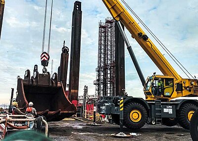 Der vierachsige AT-Kran Grove GMK4100L-1 mit einer Tragfähigkeit von 100 Tonnen und einem 60 Meter langen Ausleger verfügt über die besten Traglasten seiner Klasse. Dank seiner kompakten Bauweise mit nur 2,55 Meter Breite kann er auf den engsten Baustellen eingesetzt und mühelos manövriert werden.