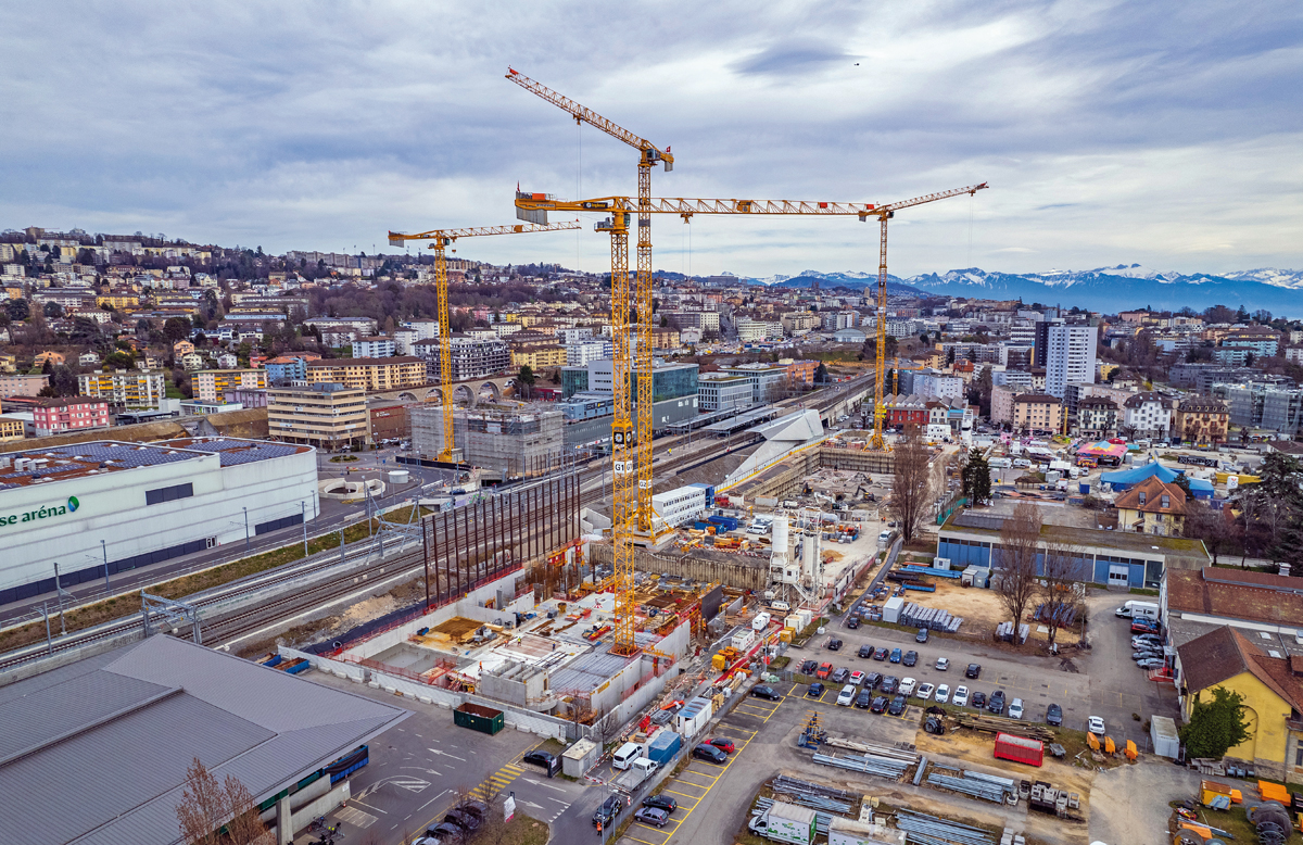 In Lausanne entsteht ein neues Stadtviertel, das den ökologischen Herausforderungen gerecht werden und die Energieautonomie fördern soll. Es umfasst 23 700 m2 Bürofläche, 200 Wohneinheiten auf 14 700 m2 und 3 800 m2 Gewerbefläche. »Mehrere Faktoren machen dieses Projekt mit Gebäudehöhen von bis zu 80 m und der Lage der beiden Türme in der Nähe der SBB-Bahnlinie zu einem komplexen und einzigartigen Projekt. Aus diesen Gründen brauchten wir einen zuverlässigen Partner, auf dessen Kompetenz und Professionalität wir volles Vertrauen haben konnten«, so Florian Lamy-Rousseau, Projektleiter bei Implenia. Die Wahl fiel auf die Stirnimann AG aus Olten.