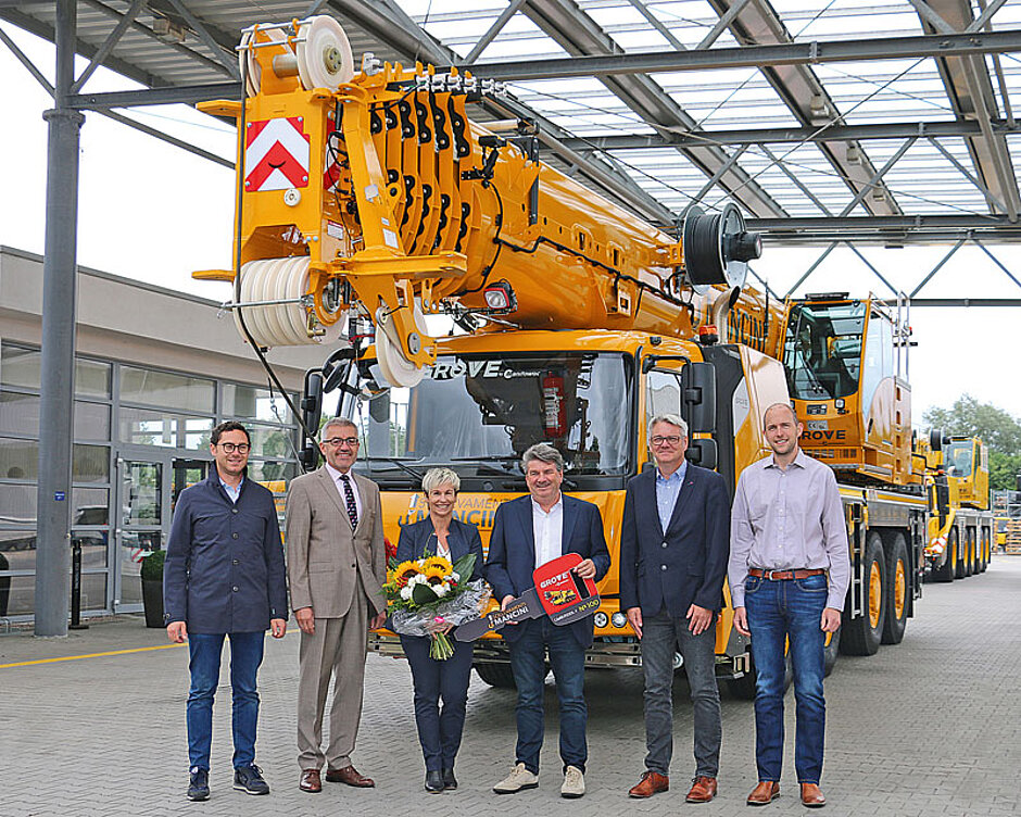 Fiorenzo Mancini und seine Frau Simona Rossetti, denen beiden das Unternehmen gehört, nahmen den GMK4100L-1 im Juni im Wilhelmshavener Manitowoc-Werk entgegen. Die Zeremonie, an die sich ein Rundgang durch die Produktionshallen anschloss, wurde von Davide Camperi, Manitowoc Vertriebsmanager für Mobilkrane in Italien, geleitet.