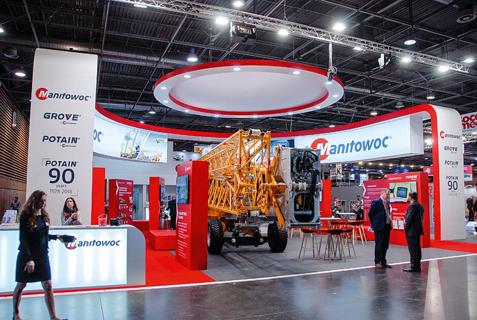 Neben den Potain-Kranen standen in Paris die Mobil- und Raupenkrane der Manitowoc-Marke Grove mit im Mittelpunkt, einer der führenden Hersteller im Markt der All-Terrain- (AT), der Rough-Terrain- (RT) und der auf Lkw montierten Krane. Eines der neuesten Modelle ist der GMK4090-Kran für alle Geländearten. Er ist die Antwort auf die Forderung der Kunden nach leichten, flexiblen AT-Kranen in der 90-t-Tragfähigkeitsklasse, so das Unternehmen. Dieser Kran ist nur 2,55 m breit, bietet aber die »besten Taxitraglasttabellen seiner Klasse«, heißt es bei Manitowoc weiter.
