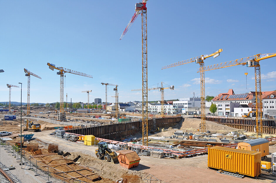 Kran-Mieter sind unter anderem die Firmengruppe Max Bögl (Neumarkt), das Bauunternehmen August Schmidt aus Wermelskirchen sowie die ARGE Guggenberger aus Regensburg und Implenia Hochbau mit Hauptsitz in Dietlikon in der Schweiz. Aufgrund der beengten Platzverhältnisse auf der Baustelle überschneiden sich die Schwenkbereiche der Krane. Für den kniffligen Auftrag setzt die Firma Moser auf die Potain-Krane ihres Mietparks: einen Untendreher (Potain GTMR 386) und zwölf Obendreher (sechs MDT 218, ein MDT 192, drei MDT 178, ein MDT 162 sowie ein MD 120) mit Tragfähigkeiten bis zu maximal 10 t und einer Ausladung von 65 m. Speziell bei Bauvorhaben, bei denen mehrere Krane gleichzeitig eingesetzt werden, eignen sich die spitzenlosen Potain-Krane des Typs MDT, weil ein Überschneiden der Schwenkbereiche mit den unterschiedlichen Hakenhöhen der Krane einfacher realisiert werden kann. Ein weiterer Vorteil bei Turmdrehkranen ohne Spitze ist ihre unkomplizierte Montage, die die Aufbauzeit und somit die Aufbaukosten gering hält.