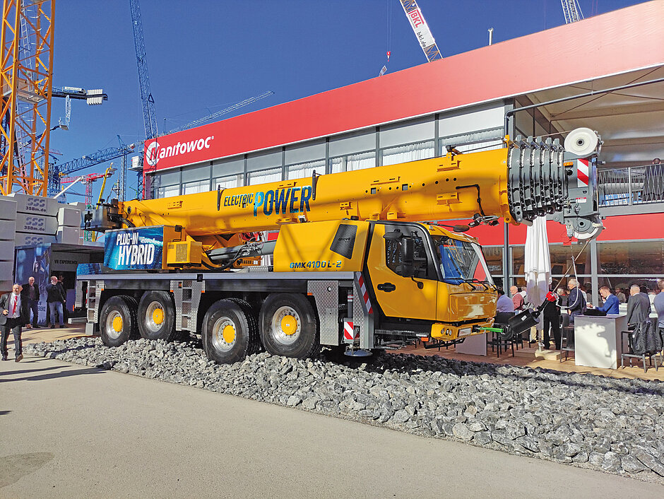 Darüber hinaus feierten auf der Bauma zwei vierachsige Grove-AT-Krane Premiere. Der GMK4070L verbindet 70 t maximale Tragfähigkeit mit Vielseitigkeit beim Fahren auf Straßen. Als weiteres Messeexponat wurde der Plug-in-Hybrid-Konzeptkran GMK4100L-2 vorgestellt. Der vollständig elektrisch angetriebene Oberwagen des umweltfreundlichen 100-t-Krans wird als ein Beleg für die fortschrittliche Entwicklungsarbeit der Grove-Ingenieure angeführt.