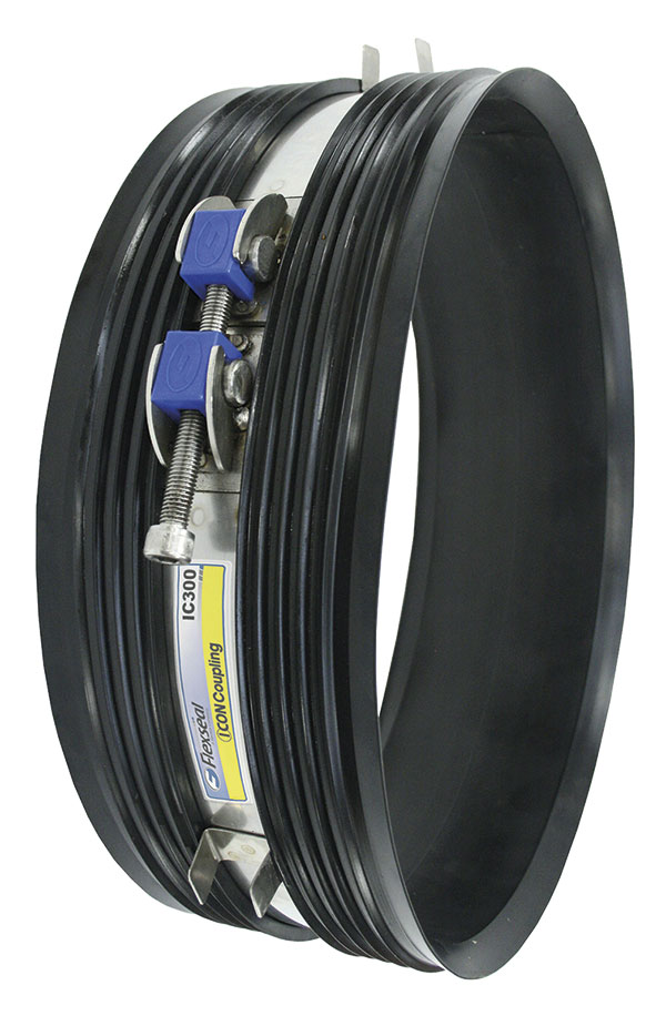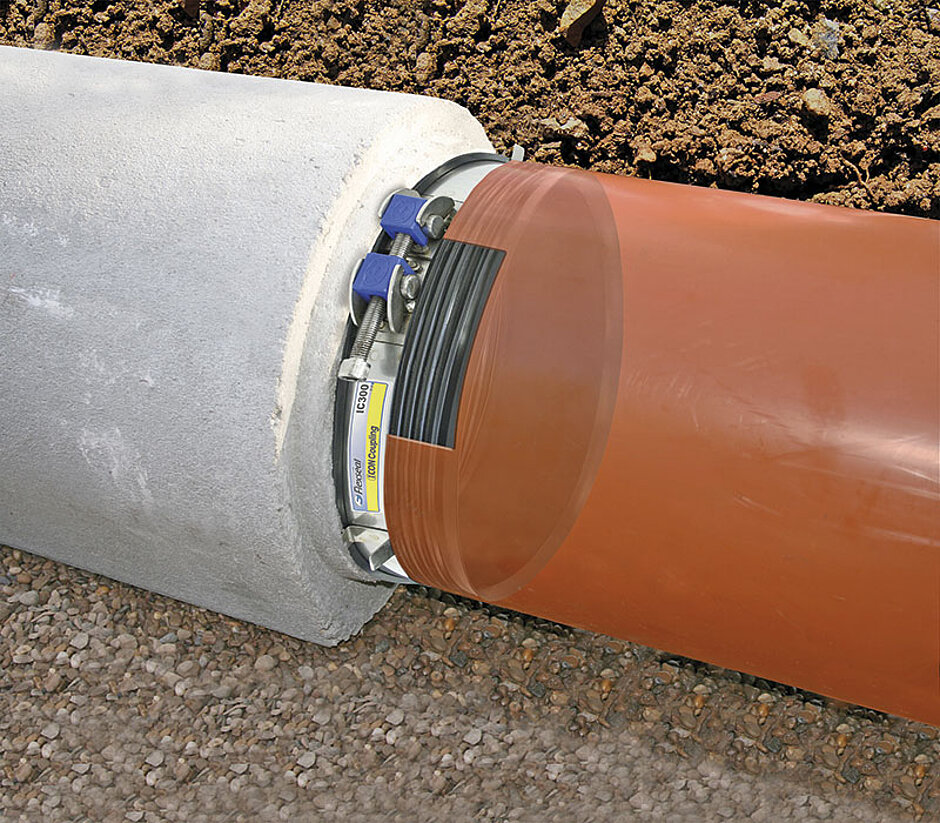 Die neue ICON-Manschette hat eine Gesamtbreite von 130 mm und eignet sich für Rohre mit Innendurchmessern von 150 bis 400 mm. Bis 300 mm reicht eine Spanneinheit aus, für größere Rohre ist die Manschette mit zwei Schraubbolzenbefestigungen versehen. Weil die ICON-Manschette nur 9 mm aufträgt, verringert sich der Innendurchmesser der Verbindung nur um insgesamt 18 mm. Die Enden sind angeschrägt, sodass Rohr und Manschette fugenlos ineinander übergehen und die Hydraulik optimal erhalten bleibt. »Die Verbindung über die ICON-Manschette ist dauerhaft dicht. So kann das Abwasser den umgebenden Boden nicht aufweichen oder kontaminieren«, so Mertens. Durch die lange Lebensdauer der Manschette entstünden zudem keine Kosten für Wartung und Überwachung.