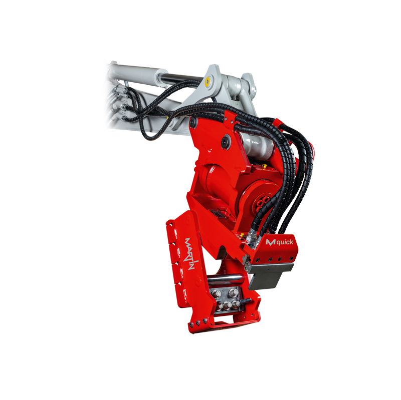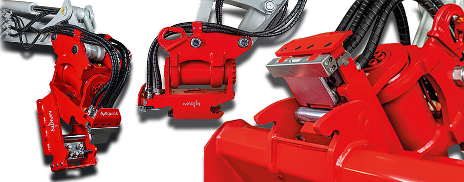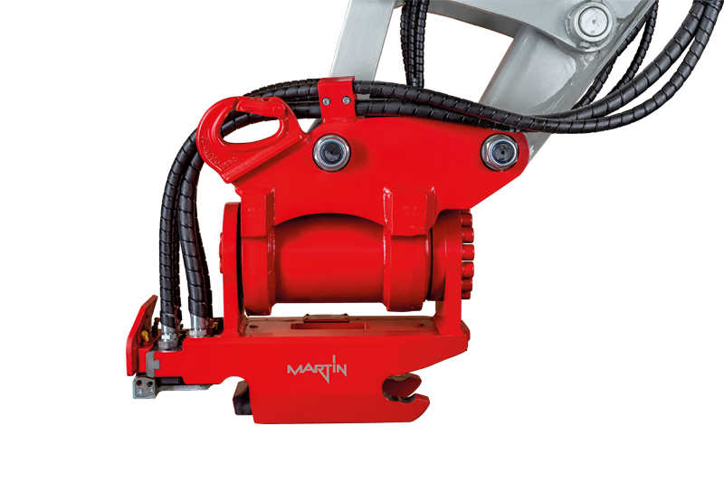 Das Schnellwechselsystem M-Quick ist das Kernprodukt der Vorarlberger Spezialisten (siehe auch Kasten »Fakten«). Als eines der ersten Unternehmen in Europa habe man auf den Schwenkantrieb PowerTilt gesetzt. Eine Technik, die heute – speziell im Hinblick auf die durch die geologischen Bedingungen in den Alpen besonderen Herausforderungen – kaum mehr wegzudenken sei. »MARTIN-Baggeranbaugeräte ergeben zusammen mit den MARTIN-Schnellwechselsystemen das optimal aufeinander abgestimmte ›MARTIN Dedicated System‹«, so Andreas Veith. »Dedicated System«-Kunden würden beispielsweise von zusätzlichem Service wie erweiterten Gewährleistungsansprüchen profitieren können. Derzeit entwickelt sich die Kompaktbaggerklasse weg von manuellen oder hydraulischen Schnellwechslern hin zum vollhydraulischen Schnellwechslersystem. Hier hält das Unternehmen mit dem M-Quick-System und den Modellen MQ03, MQ10, MQ18, MQ20 und MQ26 Systemlösungen für Bagger von 1 t bis 30 t bereit.