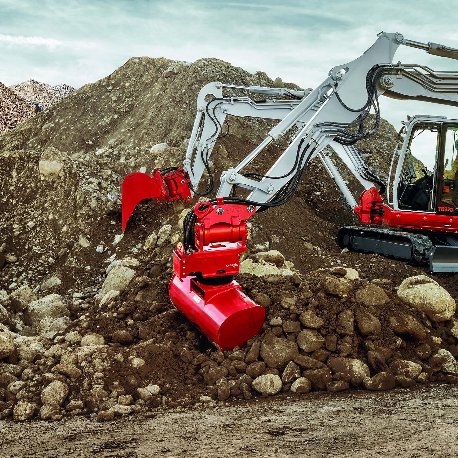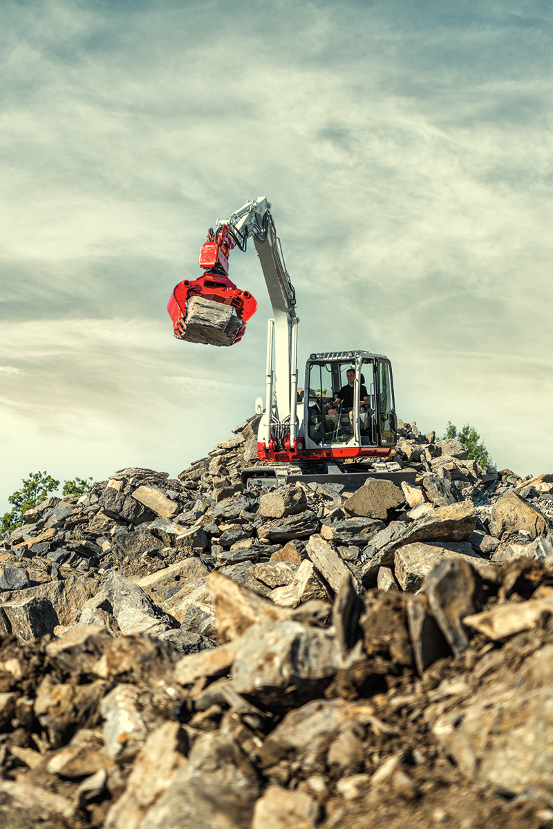 Bei Kompaktmaschinen in der Klasse von 4 t bis 10 t ist das Gewicht am Stiel ebenso wichtig wie die Baubreite des Systems. Wenn rotierende Werkzeuge nur dann zum Einsatz kommen, wenn sie auch wirklich benötigt werden, können bei normalen Grabarbeiten leichtere Löffel verwendet werden. Die Lösung von MARTIN will hier Einschränkungen von Reißkraft, Ladevolumen und Grabtiefe ausschließen.