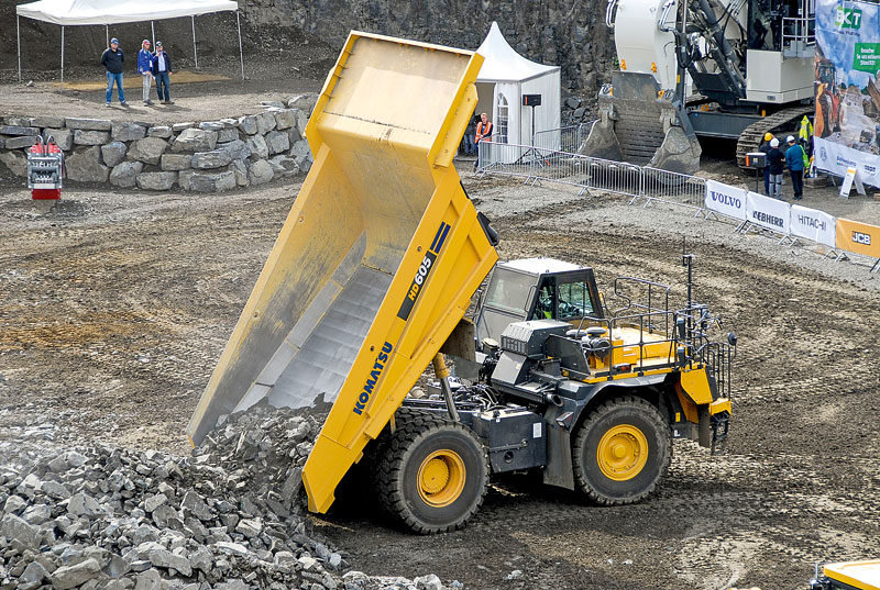 Das unterstrich auch der Steinexpo-Auftritt von Komatsu, in dessen Mittelpunkt zweifelsohne die Premiere des 70-t-Baggers PC700LC-11 stand. Neu sind neben den Muldenkippern HM300-5 und HD605-8 auch die beiden Starrrahmen-Muldenkipper HD325-8 und HD405-8. Mit Nutzlasten von 36,5 t bzw. 40 t bieten sie durch das Zugkraftkontrollsystem KTCS (Komatsu Traction Control System) eine gesteigerte Motorleistung und mehr Produktivität.
