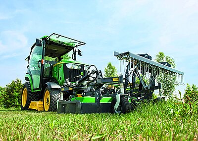 Ein Ausstattungspaket für den Winterdienst hat das Unternehmen aus Langenzenn für den John Deere 3038E vorgestellt. Bei der besonders für den Einsatz im Winter optimierten Fahrerkabine CAB-FC 3038E hat die Sicherheit für den Fahrer, geprüft nach OECD-Standard 7, Priorität. Neben TÜV-Mustergutachten verfügt die Kabine über eine Warmwasserheizung, Scheibenwaschanlage und Rückspiegel, ebenso wie über StVZO-Leuchten und Kennzeichenhalter. Für gute Rundumsicht und Belüftung sorgen die zweifach ausstellbare Frontscheibe aus Glas, die ebenfalls ausstellbare Glasheckscheibe mit Scheibenheizung sowie Türen aus UV-stabilem Polycarbonat mit Schiebefenstern. Abgerundet wird das Winterdienstpaket für den 3038E durch den Frontkraftheber FPS-JD 3038E, das Schneeräumschild SRM-FB 160 sowie zudem den Sand- und Salzstreuer SPR-H/M 250 ST. t