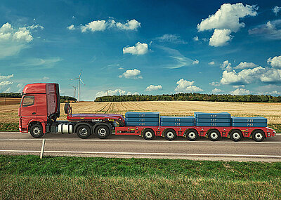 Die teleskopierbare Ladefläche des MAX110 kann um zusätzliche 5,8 m erweitert werden. Mehrere Auflageböcke ermöglichen eine gerade Auflage beim Transport überlanger Elemente. Die steckbare Rungentaschenleiste erlaubt das flexible Stützen und Absichern verschiedener Ladungen.