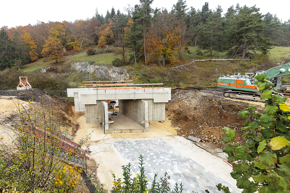 Seit Februar gab es Arbeiten rund um die Modernisierung, darunter auch der Neubau der Stahlbetonbrücken. Sie wurden neben der Strecke vom Bauunternehmen Glass mit Hauptsitz in Mindelheim (Bayern) hergestellt. Am Allerheiligenwochenende kamen dann die Profis von Max Wild ins Spiel, für den Abbruch der drei alten und den Verschub der drei neuen Brücken.