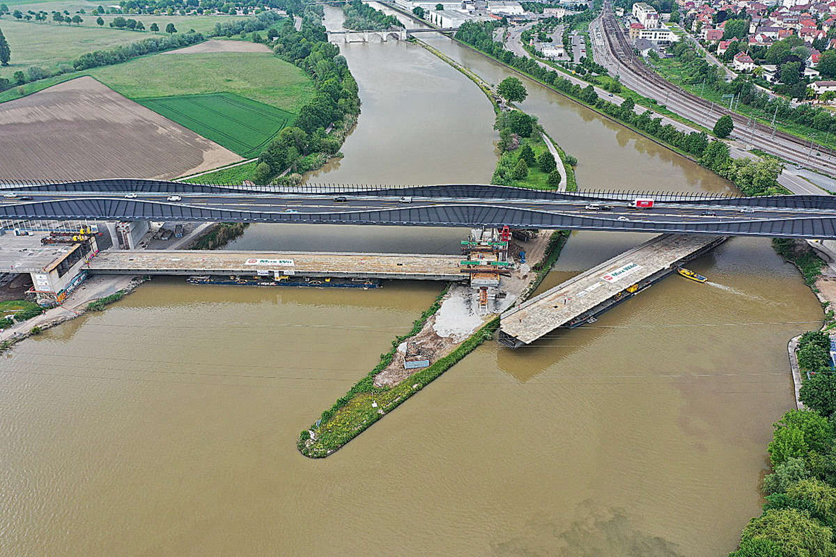 Eines der Highlights des Projekts war der Rückbau des Neckartalübergangs. Vier Bauwerke mit einer Gesamtlänge von 1 326 m stellten die Abbruchprofis von Max Wild vor eine anspruchsvolle Aufgabe. Das Bauwerk wurde dabei in vier Elemente zerteilt und per Litzentechnik auf Pontons im Wasser abgesenkt und anschließend auf dem Neckar zu einem 3 km entfernten Container-Terminal transportiert. Das längste zu bewegende Aushubteil war 137 m lang und 746 t schwer.