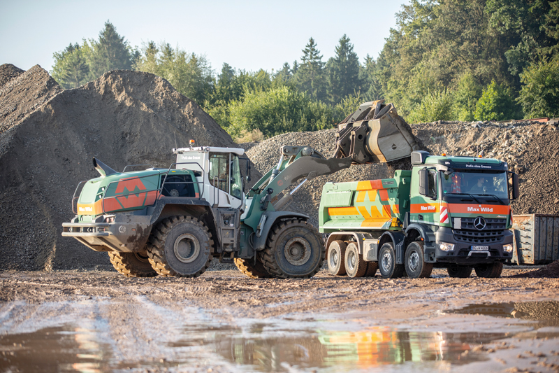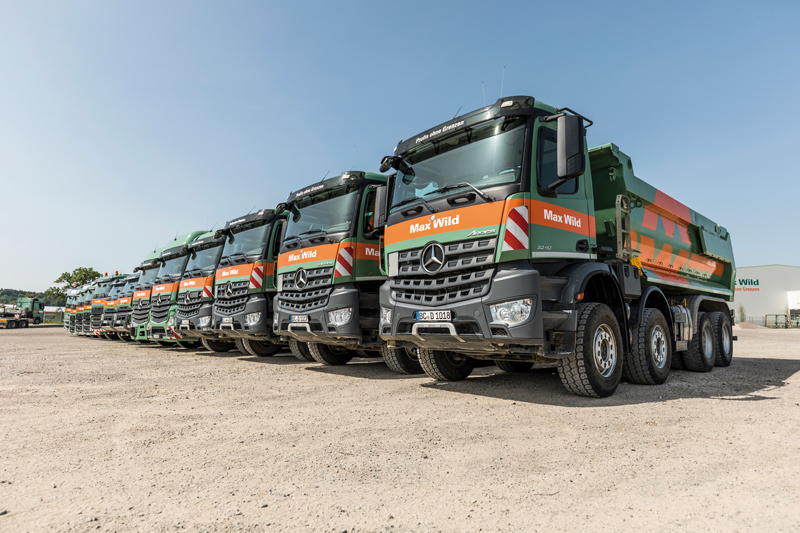 Zum entsprechend umfangreichen Fuhr- und Maschinenpark gehören rund 200 Baumaschinen für den Erd- und Tiefbau, 35 Abbruchbagger, vier Brecheranlagen, 23 Bohranlagen sowie rund 110 Lkw inklusive Auflieger und Hänger sowie 25 Zugmaschinen für Nutzlasten bis zu 140 t. Täglich werden etwa 5 000 t an verschiedensten Materialien bewegt, auch mithilfe der rund 100 Lkw von Subunternehmern. Außerdem hat Max Wild ca. 330 Fahrzeuge im Bereich von unter 3,5 t im Einsatz. »Vom Hochbau einmal abgesehen sind wir so gut wie in allen Baubereichen unterwegs«, sagt Roland Wild. Weshalb Außenstehende angesichts des breitgefächerten Leistungsportfolios des Familienunternehmens Max Wild – in Anlehnung an den bekannten Slogan des Landes Baden-Württemberg »Wir können alles. Außer Hochdeutsch.« – auch sagen könnten: »Die machen alles. Außer Hochbau.«