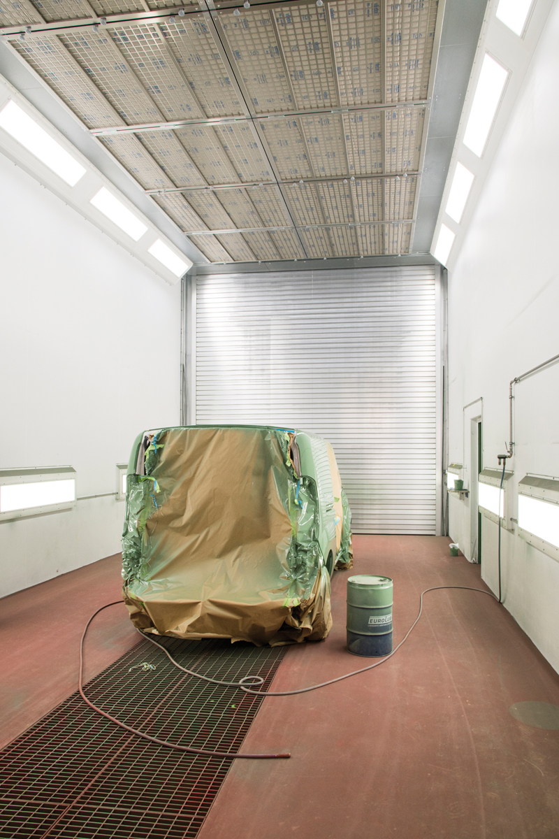 In dem 121 m langen, 42 m breiten und 13,5 m hohen Gebäudekomplex stehen auf insgesamt rund 6 400 m² diverse Werkstattbereiche mit Kranen, Hebebühnen und Gruben zur Verfügung, es gibt verschiedene Lagerflächen, eine Lackiererei, eine Schlosserei für Stahlarbeiten und eine Waschstraße sowie 1 120 m² an Bürofläche. »Die Kranlast beträgt bis zu 50 t«, so Florian Veit weiter. »Damit können auch die ganz schweren Fahrzeuge und Maschinen bewegt werden.«