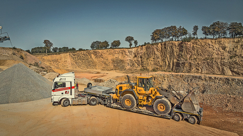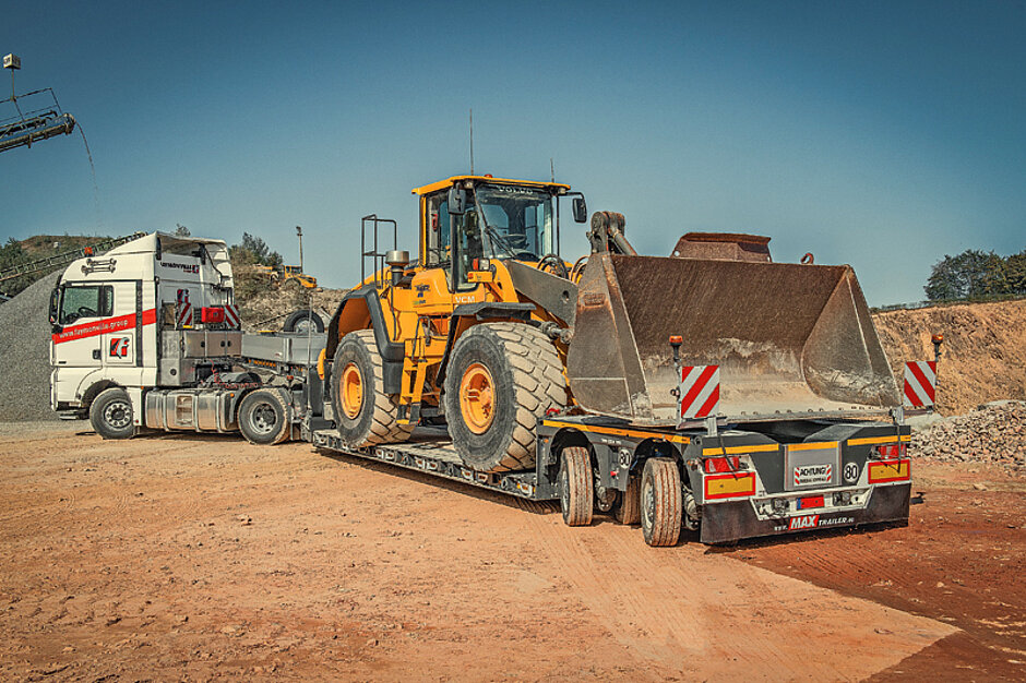 Bei Kurvenfahrten und verwinkelten Baustellenzugängen unterstützt der 60°-Einschlagwinkel eine optimale Manövrierbarkeit. Das verbesserte Fahrverhalten und die einfache Handhabung würden, wie die Luxemburger unterstreichen, bei Fahrern geschätzt. Die Pendelachsen verschaffen Nutzlastmöglichkeiten von 12 t je Achslinie. Der abfahrbare Schwanenhals des MAX510-Tiefbettaufliegers ermöglicht eine praktische Beladung von vorn.