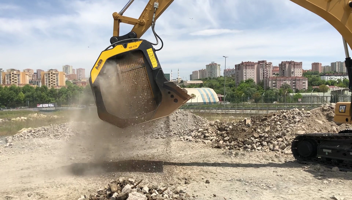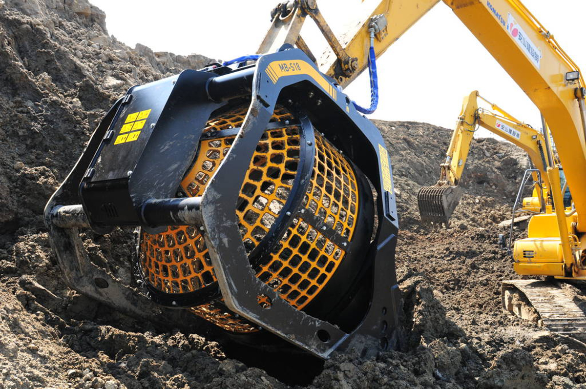 Gleichzeitig wurde auch ein Sieblöffel MB-S18 angeschafft. Damit ist die Dumke GmbH in der Lage, ihren Kunden ein komplettes Paket an Recycling-Dienstleistungen anzubieten. Der für Bagger von 20-35 t geeignete Sieblöffel kommt zum Absieben von Entsorgungsböden und der Brecherlöffel zum Brechen von Betonaufbruch zum Einsatz. Damit kann die Entsorgung von Baureststoffen so gering wie möglich gehalten werden.