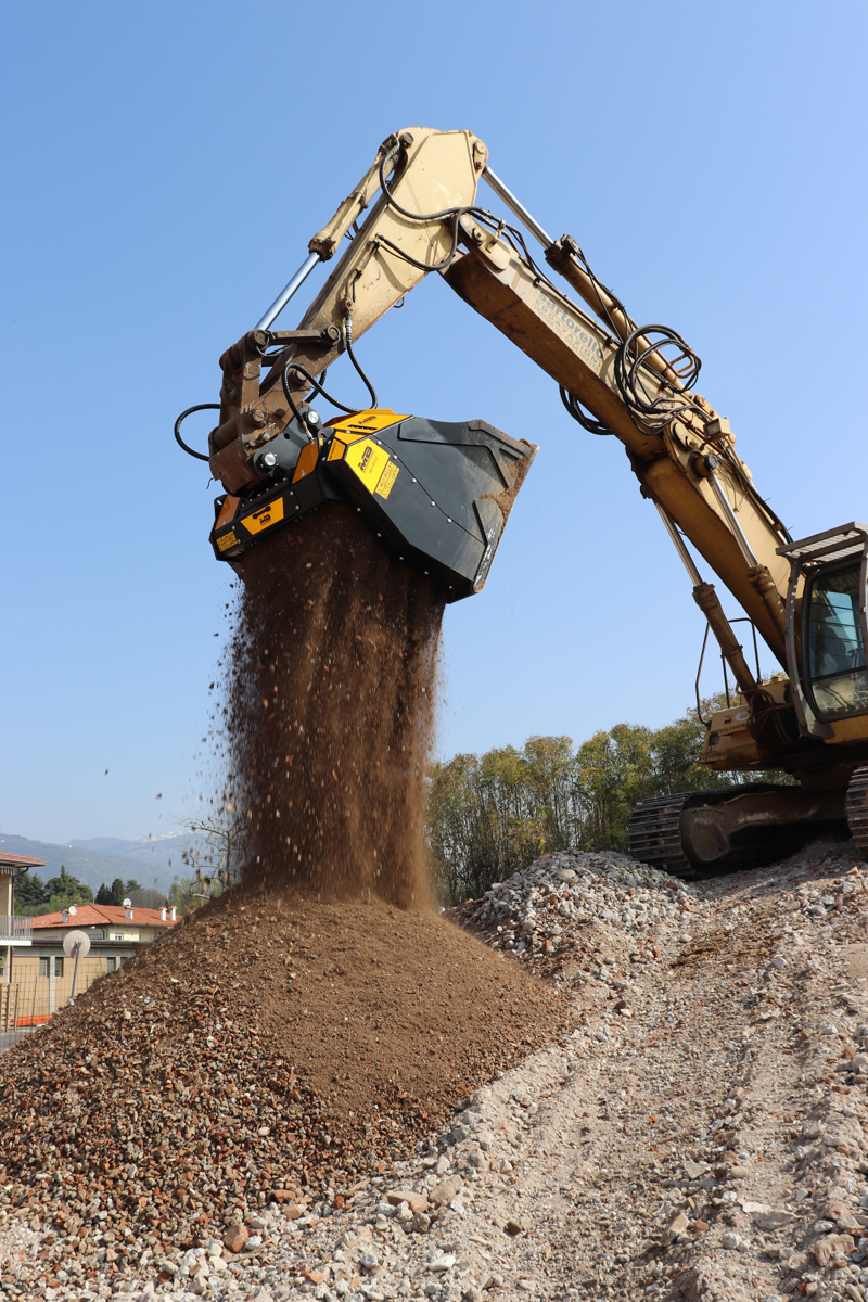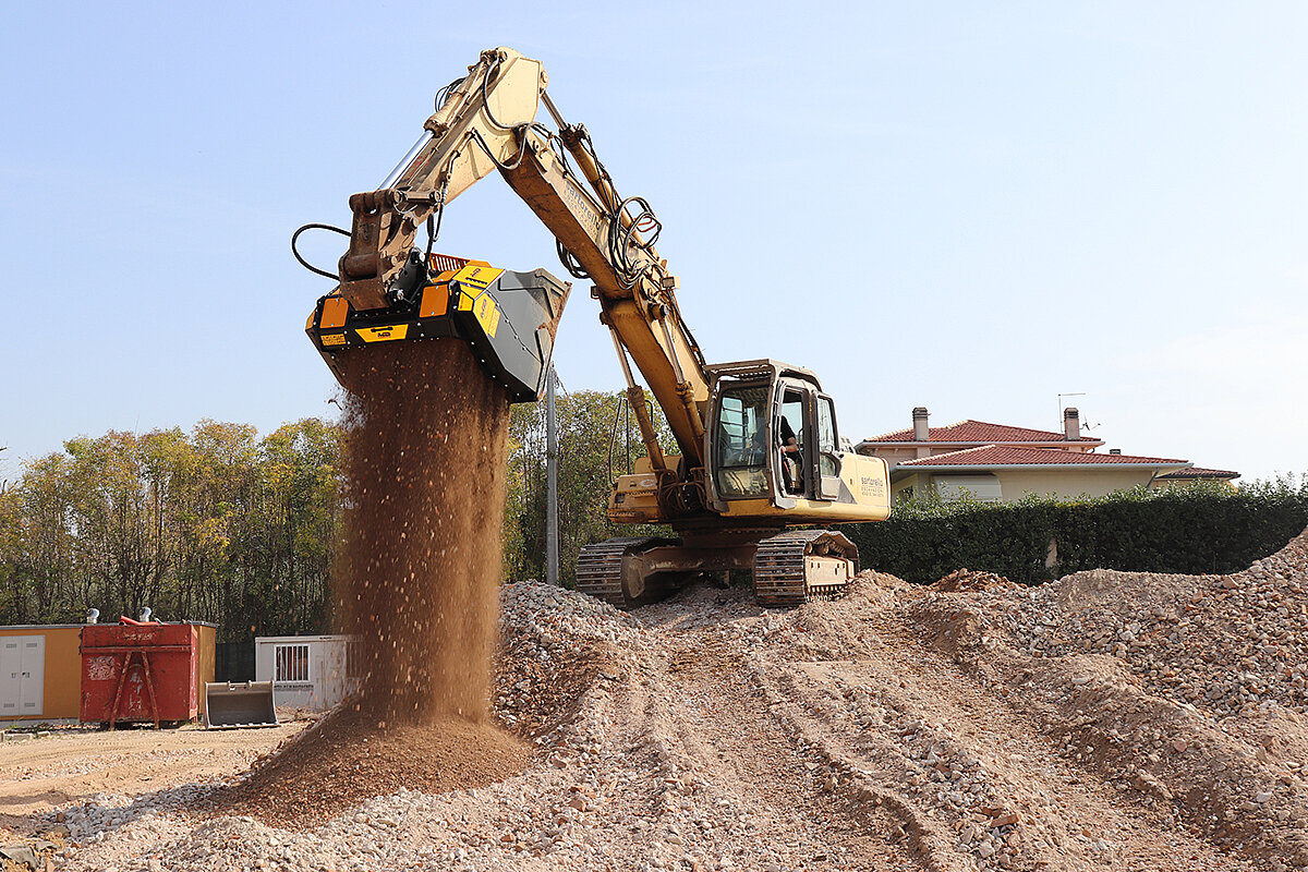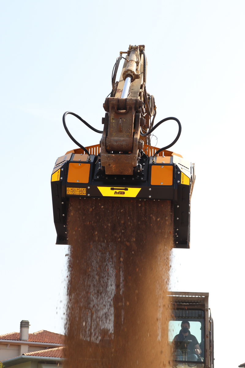 Der italienische Anbaugerätespezialist MB Crusher hat sein Wellensieb-Sortiment um sein bisher größtes und leistungsstärkstes Modell erweitert - den MB-HDS523. Geeignet ist das Anbaugerät für Bagger mit einem Einsatzgewicht von 30 t bis 45 t. Im Rahmen eines digitalen Presse-Events, an dem die bauMAGAZIN-Redaktion gerade eben (12.05.2021) teilnahm, rückte das Unternehmen vor allem die hohe Leistungsfähigkeit des 3,35 t schweren Geräts in den Mittelpunkt: Punkten soll der neue Schaufelseparator mit Robustheit und verbesserter Produktivität. Eine Besonderheit stellt das „V-Shaft“-System dar: Der MB-HDS523 ist das einzige Modell der HDS-Serie mit insgesamt fünf Wellen, was die Produktionsrate sowie die Verarbeitungsgeschwindigkeit merklich steigern soll.