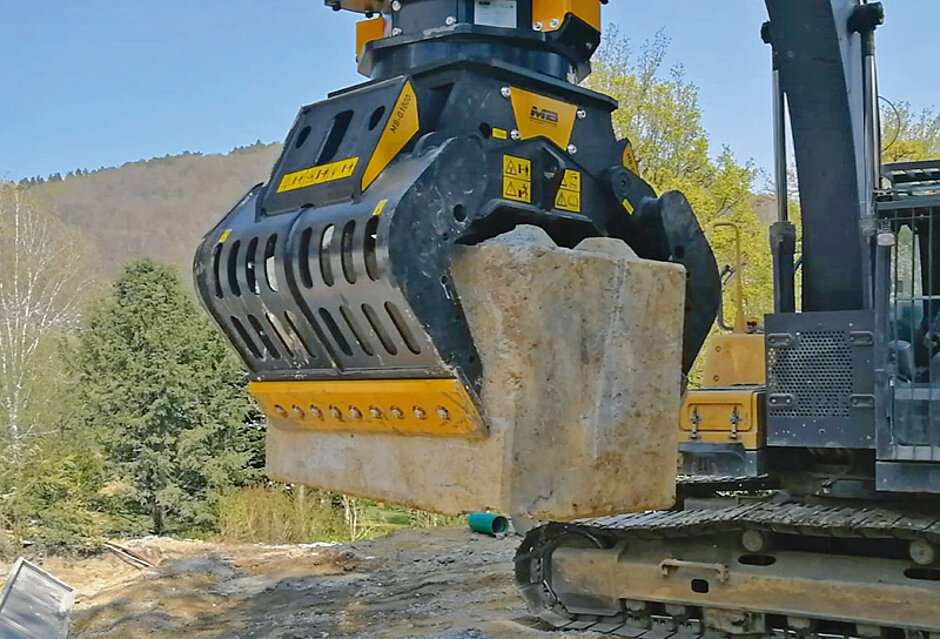 Auch der neue MB-G1000 verfügt u. a. über eine hydraulische 360°-Drehung, die das effiziente Greifen des Materials unter allen Arbeitsbedingungen ermöglichen soll. Er ist zudem mit einem Sicherheitsventil ausgestattet, das ein versehentliches Öffnen im Falle eines plötzlichen Druckabfalls der Trägermaschine verhindern soll. Ebenso besitzt er einen Silentblock, der den Einsatz in Bereichen erlaubt, in denen der Geräuschpegel unter Kontrolle gehalten werden muss. Darüber hinaus kann der MB-G1000 abhängig von den erforderlichen Arbeiten mit verschiedenen Zubehörteilen ausgestattet werden. Dabei handelt es sich um das Kit »Greifverbesserung des Schaleninneren« (um Materialien mit besonderen Gewichten und Formen mit besserem Griff und größerer Kontrolle zu handhaben), das Kit »Schneidmesser mit Zähnen« (das aus einem doppelten Schneidmesser besteht, das auf der einen Seite gezahnt und auf der anderen Seite glatt ist), das »Hebe«-Kit (für geradliniges oder empfindliches Material) und das »Schalenabdeckung«-Kit (um Materialien von kleiner Dimension aufzunehmen und handhaben zu können). t