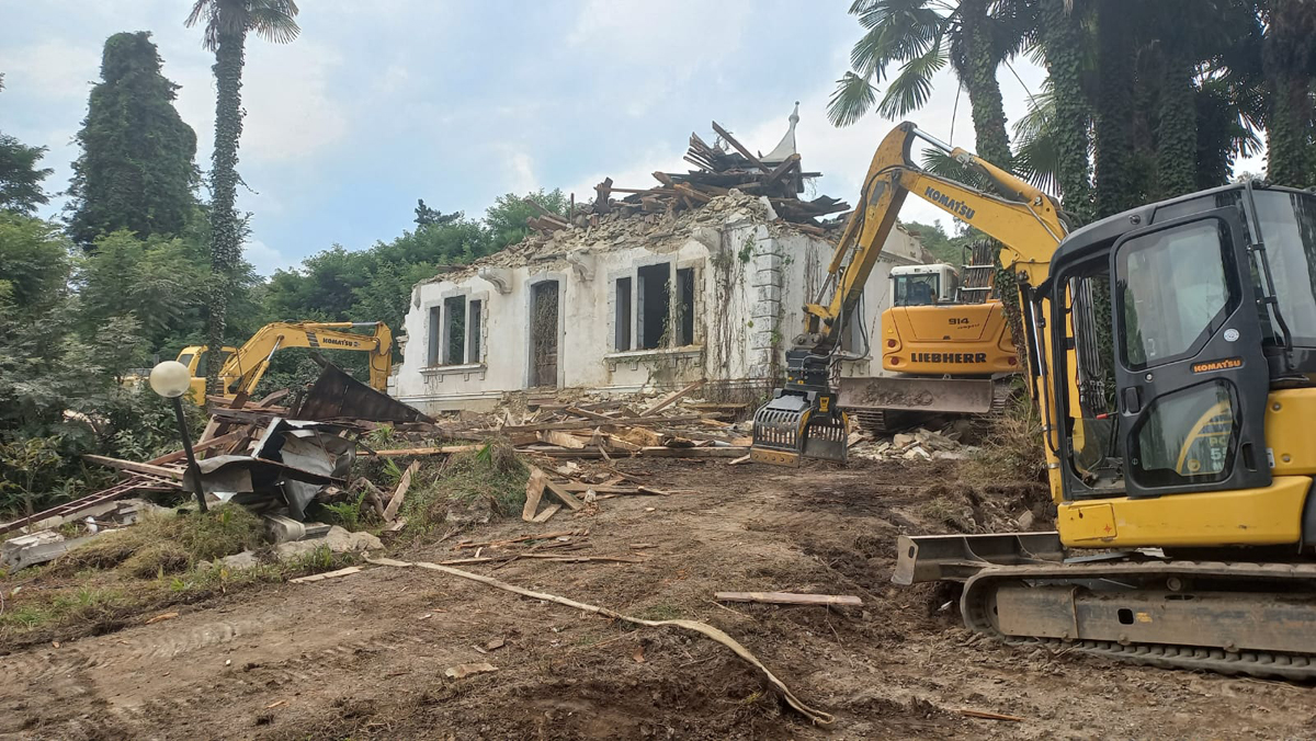 Jetzt ist es Zeit für den schwierigen Teil: Wände, Decken, Stahlbetonträger – alles muss weg.