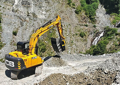 Die gleiche Entscheidung traf auch ein italienisches Unternehmen, um eine Tourismusstraße zu schaffen, die in einen Wald auf der Hochebene von Asiago in der Provinz Vicenza führt. Mit dem mobilen MB-Backenbrecherlöffel BF90.3 wurden Steine und Felsen zerkleinert und die unterschiedliche Härte der Materialien damit bewältigt. Der Einsatz erforderte vor Ort eine maximale Leistung. Gleiches gilt für die ebenso norditalienische Region Friaul – Julisch-Venetien, wo der größere MB-Backenbrecherlöffel BF120.4 am Bau einer Bergstraße an einen schwer zu erreichenden Ort arbeitete.