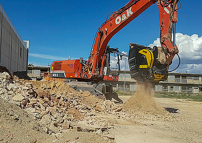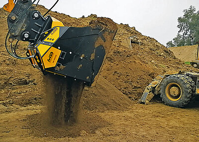 Die Trennung von Aushubmaterial gilt als weiterer kritischer Punkt beim Bau von Forststraßen: Üblicherweise besteht die Lösung darin, das Material mit einem Lkw den Berg hinauf und hinunter zu bewegen. Dank der MB-Anbaugeräte ist der Hin- und Hertransport nicht mehr erforderlich. Die Sieblöffel des italienischen Herstellers erreichen jede Baustelle und sieben das Aushubmaterial vor Ort. So auch auf einer Baustelle in den kanadischen Wäldern beim Bau einer Verbindungsstraße. Dazu wurde das von einem MB-S10-Sieblöffel gesiebte Material – Erde und Steine – vor Ort verwendet.
