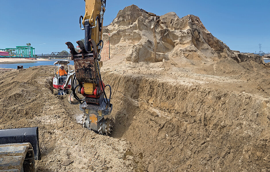 In Kalifornien wurde mit einer Querschneidkopf-Fräse das Flussufer erweitert, was zu flacheren Wänden und glatteren Böden führte. Der Einsatz der MB-R700-Fräse machte Tieflöffel oder Hammer überflüssig. Der Einsatz dieser Methoden hätte auch nicht zu den gleichen Ergebnissen geführt.