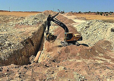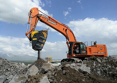 Das Unternehmen Al-Jaber & Makhlouf setzt auf einen MB-Sieblöffel, um die Arbeiten zu vereinfachen und den Zeitplan einhalten zu können. Mit dem an einen Hitachi-Bagger montierten Anbaugerät konnten Zeit, Ressourcen und Geld eingespart werden. Aushubmaterial wurde direkt vom Sieblöffel MB-S18 gesiebt. Der gröbere Teil wurde als Basis verwendet, während der feine Teil mit Sand vermischt und als Stabilisator verbaut wurde.