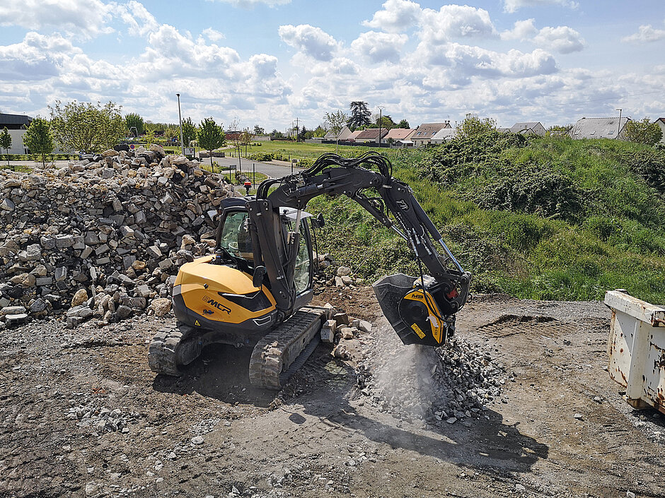 Mit einem Mecalac-Bagger 8MCR und einem Brecherlöffel MB-C50 verwertet ein französisches Unternehmen für Erd- und Schwimmbadbau Abbruchmaterial von seinen Baustellen, das für die Deponie bestimmt war, und senkt so die Entsorgungskosten, die Umweltverschmutzung und respektiert die Umgebung, in der es tätig ist. Der Anwender installierte einen Sieblöffel MB Crusher S10 auf einem 10-t-Mecalac und konnte so Aushubmaterial sieben, um Mutterboden zu erhalten, eine natürliche Ressource, die erhalten werden muss, um Beete und die Rasenflächen in den Gärten des berühmten Schlosses von Versailles zu erneuern. Ein Landschaftsbauunternehmen hat sich in diesem Fall beispielsweise für einen effizienten Greifer des Typs MB-G350 entschieden, der an seinen Bobcat Minibagger E27 angebaut wird, um Äste, Stämme, Hecken und Gestrüpp sicher, schnell und effizient zu bewegen.