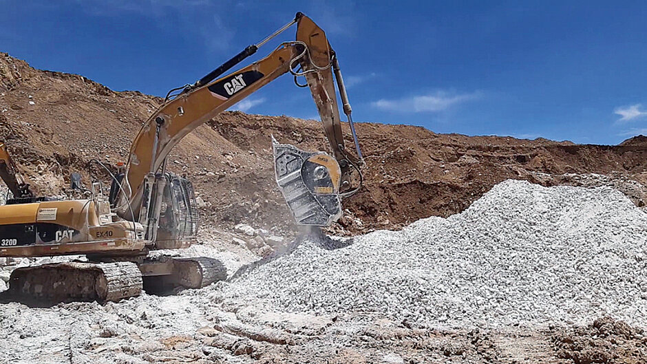 Bei MB Crusher zeigt man sich auch überzeugt, dass selbst Arbeitsmethoden, die »immer funktioniert« haben oder »keine Änderungen« erfordern, bei einer Kursänderung große Vorteile mit sich bringen können. Als ein peruanisches Bergbauunternehmen einen MB-Backenbrecher BF90.3 an seinem Caterpillar-Bagger anbaute, habe man auch einen Weg erkannt, das eigene Geschäft ohne weitere Kosten zu steigern. Hatte man bisher Gips zu einem vernachlässigbaren Satz lediglich weiterverkauft, wurde dieser mit dem Backenbrecherlöffel fortan zerkleinert, um ihn – wertiger – zu einem höheren Preis absetzen zu können. Der Wechsel von der alten zur neuen Arbeitsweise habe höhere Erträge und damit auch eine schnelle Amortisierung der Brecherinvestition bewirkt.