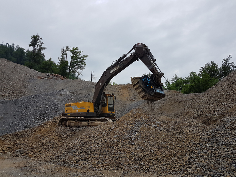 Auch ein Schweizer Unternehmen realisierte mit dem Einsatz zweier MB-Crusher-Produkte – Brecherlöffel und Sieblöffel – einen vollständigen Recycling-Lauf mit Volumenreduzierung, Materialauswahl und Wiederverwendung vor Ort. Gesucht war eine technische Lösung, mit der die Kosten gesenkt und stationäres Material wiederverwendet werden könnte. Mit den MB-Produkten habe man, so berichteten Unternehmensvertreter dem italienischen Hersteller, nicht nur die Personalkosten, den Maschinenverschleiß und den Verbrauch senken können, sondern ebenso ein einwandfreies Recycling-Material zu einem wettbewerbsfähigen Preis produzieren können, ohne den Betrieb unterbrechen zu müssen.