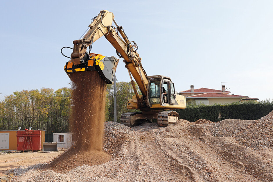 Die Schaufelseparator-Baureihe MB-HDS besteht aus insgesamt fünf Modellen – ausgelegt auf die unterschiedlichen Anforderungen an das Material. Nutzen lassen sich die Anbaugeräte an Baggern, Radladern, Baggerladern und Raupenladern in unterschiedlichen Gewichtsklassen von 3,5 t bis 45 t.