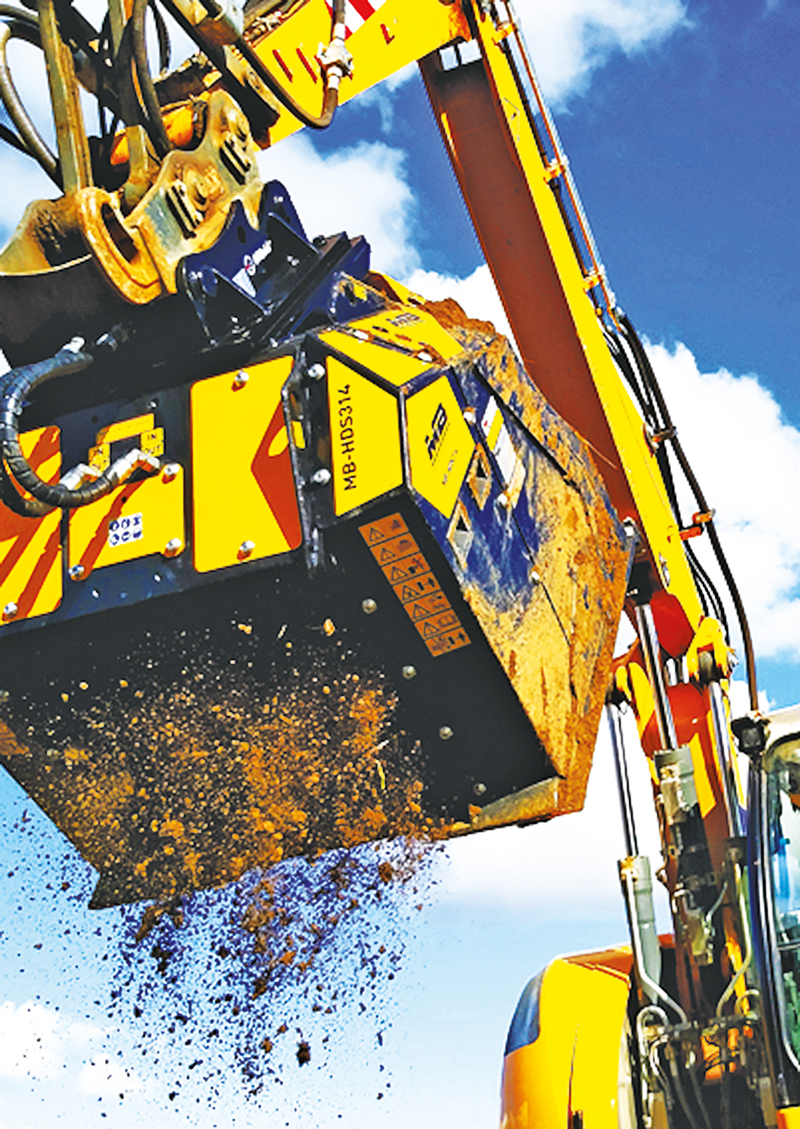 MB Crusher bietet seine Schaufelseparatoren für Bagger und Baggerlader/Lader im Einsatzbereich von 3,5 t bis 35 t an. Lieferbar sind verschiedene Wellensätze, für diverse Einsatzzwecke, beispielsweise für die Rückverfüllung von Rohr- und Kanalgräben, für das Mischen, Sieben und Belüften von Erde und Kompost oder für das Bearbeiten und Zerkleinern von Grünschnitt, Wurzeln oder Ästen. tü t