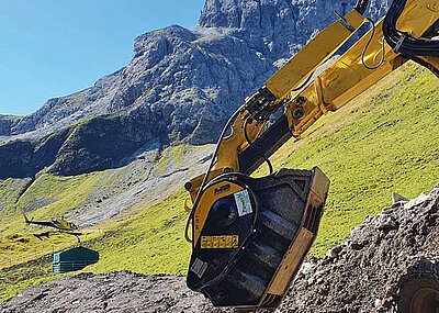 Auch außerhalb Deutschlands profitiert man von den MB-Querschneidkopffräsen. So war auf Korsika ein 450 m langer Fußgängerweg rund 5 m oberhalb des Meeres zu errichten. Am Abgrund konnte nur ein Bobcat E85-Midibagger arbeiten, der von der Kraft der MB-R500-Fräse profitierte. Das MB-Rotationskit erlaubte es dem Baggerfahrer, die Fräse direkt von der Kabine aus zu drehen, ohne die Arbeiten unterbrechen zu müssen. tü t