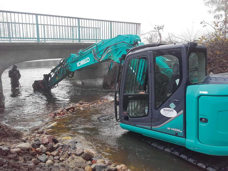 Fräse kämpft sich durch das Flussbett
