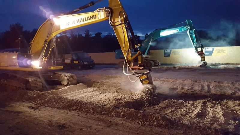 In Witzeeze bei Lübeck leistete eine MB-Fräse bereits Schwerstarbeiten im Flussbett der Elbe. An einem Kobelco SK140 montiert, musste sich die MB-R700 unter Wasser in bis zu 1,5 m Tiefe durch Gestein und Beton fräsen. Das ausführende Bauunternehmen griff auf eine MB-Fräse zurück, weil diese als unter Wasser einsetzbar gilt, ohne dass Probleme an den hydraulischen und mechanischen Anlagen entstehen könnten.