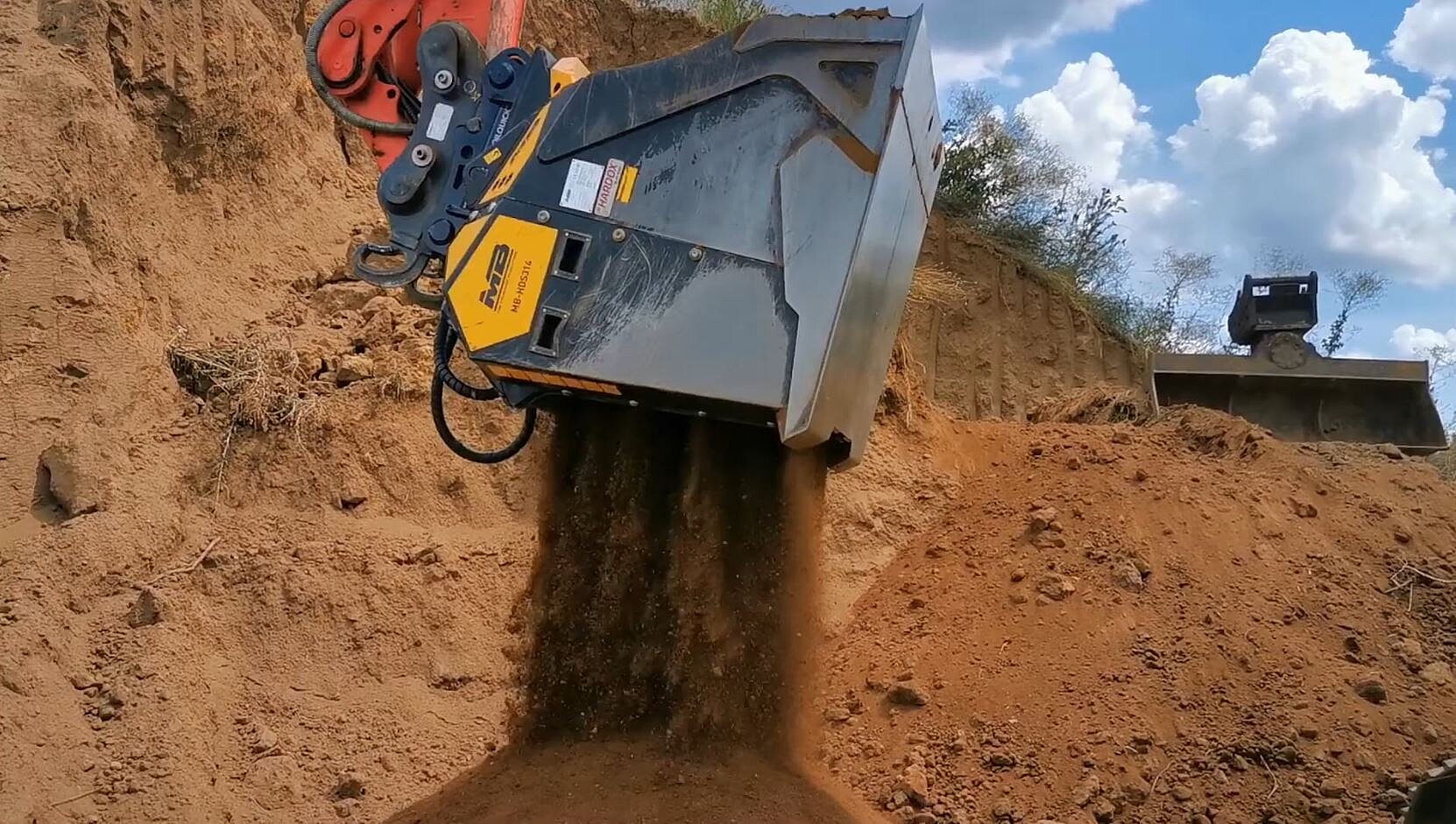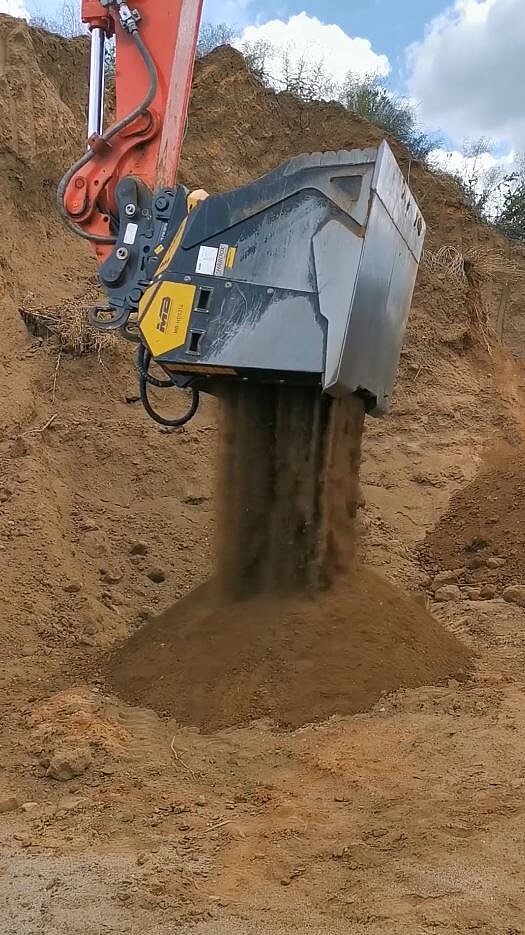 Ein Beispiel: Der Separatorlöffel MB-HDS314 wurde an einem Bagger O&K RH6 installiert. Die Aufgabe war es, den Boden so fein wie möglich abzusieben und von Störstoffen zu befreien. Der MB-HDS314, der für Baggerlader/Lader von 9-14 t und Bagger von 12-20 passt, wurde mit einer RE8 Welle mit einem Trennabstand 0-8,5 mm ausgestattet. Als Endprodukt habe man zum Verkauf geeigneten Mutterboden erhalten.