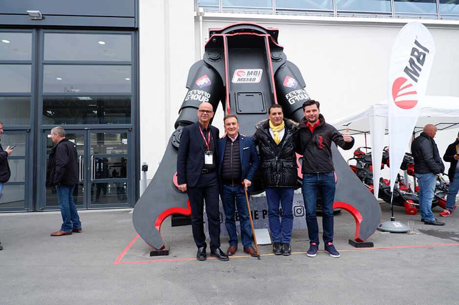 Am Freitag, den 12. April 2019 durfte die MBI® Deutschland GmbH im Rahmen der BAUMA, die weltgrößte Multifunktionszange vom Typ MBI® MS140R, an die Ferraro-Group aus Neunkirchen übergeben. Zum Highlights des 16.000kg schweren Monsters gehört das auswechselbare Gebiss, welches je nach Einsatzart variieren kann. Gezeigt wurde die Maschine mit einem Standardbetongebiss. Eine Verwandlung, zum Beispiel als Schrottschere ist in kurzer Zeit möglich. Den Giuseppe Ferraro hat sich zudem beim Kauf für ein weiteres Gebiss (SH-Schrottgebiss) entschieden. Damiano (Firmengründer & Vater) sowie Giuseppe (Geschäftsführer) Ferraro zeigten sich äußerst begeistert und können den ersten Einsatz der Maschine kaum erwarten. Weitere schöne Einsatzbilder werden folgen.
