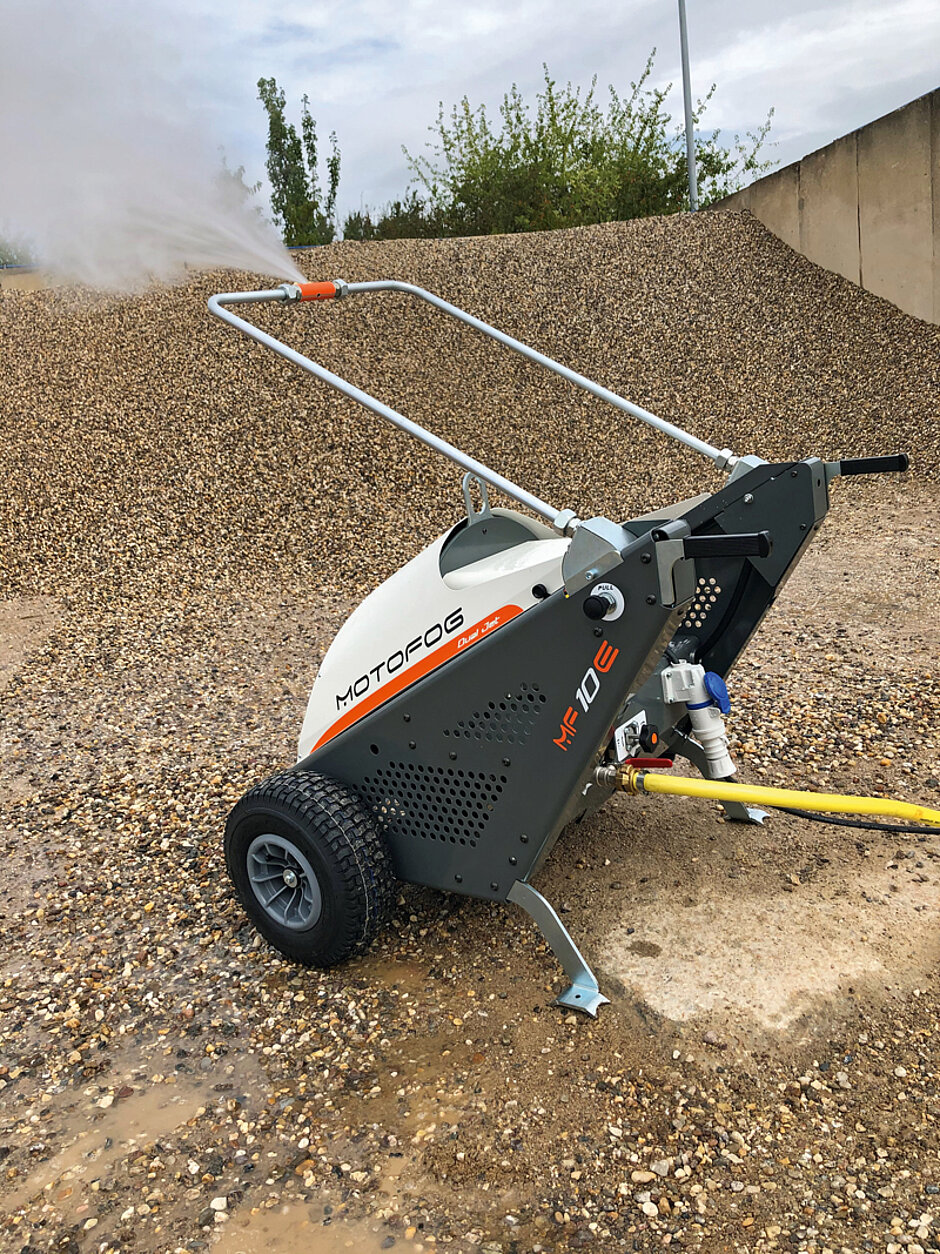 Die mobilen Motofog-Staubbindemaschinen arbeiten mit Wassernebelstrahl. Das Modell MF10 erweist sich mit 65 kg Eigengewicht und dank seiner Räder als problemlos auf Baustellen verschiebbar. Die Hochdruckpumpe wird durch einen Verbrennungsmotor angetrieben. Die Geräte sind dank »Dual-Jet-Technik« flexibel einsetzbar. Länge und Breite des Strahls werden über die Düseneinstellung angepasst.