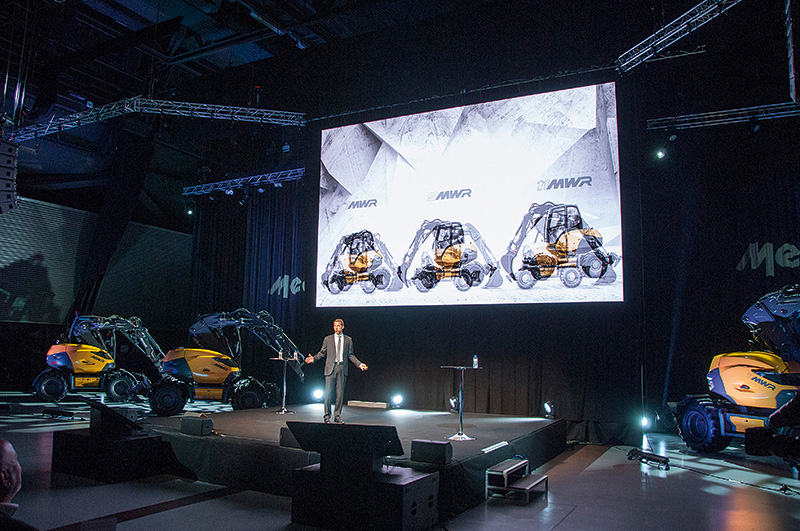 Beispielsweise könne der MWR dank des Auslegers mit integriertem Seitenversatz, des um 20% gesenkten Schwerpunktes, der Iso-Stabilität von 360°, der außergewöhnlichen Hubleistung (bis zu 50% des eigenen Gewichts) sowie eines Hubwinkels von bis zu 140° extrem präzise und effizient auf Baustellen arbeiten, bei denen die Platzverhältnisse sehr beengt sind. »Der MWR ist perfekt ausbalanciert, er hat eine große Bodenfreiheit trotz niedrigem Schwerpunkt, und er verfügt bei einer Höchstgeschwindigkeit von 40 km/h über eine intelligente Geschwindigkeitskontrolle«, so Patrick Brehmer, für den der MWR »die perfekte Ma - schine« ist vor allem auch für Deutschland, wo die Markteinführung für den September geplant ist. Aber natürlich schaut man bei Mecalac auch auf andere Länder und Regionen mit Wachstumspotenzial. Zwar seien die Märkte Zentraleuropas nach wie vor »die Basis für Mecalac und unsere Inspirationsquelle für Forschung und Entwicklung« (Henri Marchetta). Doch gleichzeitig sieht man die MWR-Baureihe als »idealen Türöffner« für den amerikanischen Markt. »Dort gibt es eine stetig steigende Nachfrage nach kompakten Baumaschinen «, sagte Alexandre Marchetta. »Der MWR erfüllt optimal ein Kriterium, das in Städten immer wichtiger wird: nämlich den Verkehrsfluss so wenig wie möglich zu beeinträchtigen.«