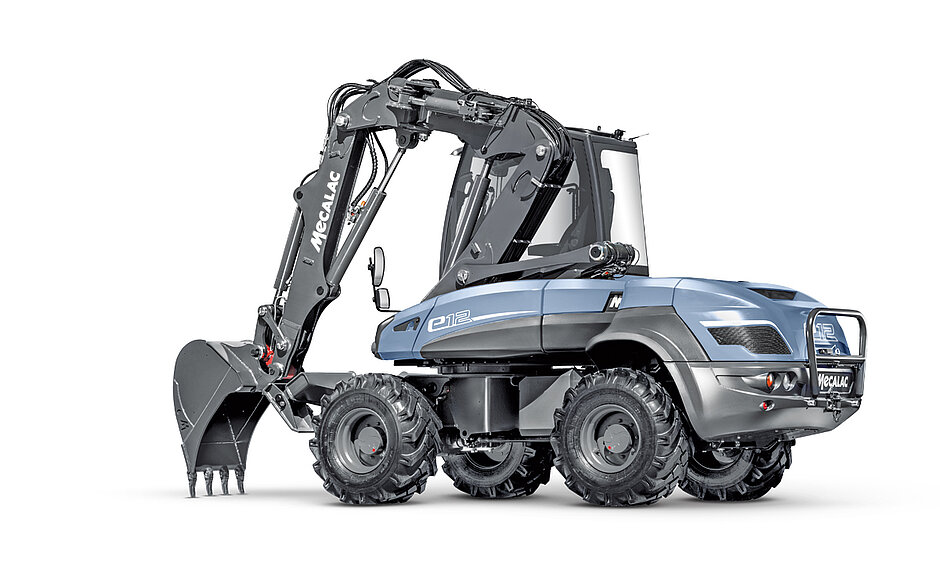 Die neue elektrische Produktreihe von Mecalac umfasst einen Bagger, einen Schwenklader und einen Muldenkipper. Mit diesen sich ergänzenden Produkten sollen alle Erdbewegungsarbeiten (Graben, Laden und Transportieren) mit lokal emissionsfreien Maschinen in einem bisher nicht erreichten Umfang durchgeführt werden können. Den 11-t-Bagger e12 hatte das Unternehmen bereits zur Pariser Intermat im Jahr 2018 vorgestellt. Als einen der Gründe für die bisherigen Lücken im Angebot elektrischer Maschinen mittlerer Größe hat Mecalac die Optimierung des Energie-Managements ausgemacht, damit letztlich eine ausreichende Autonomie gewährleistet werden kann. Mecalac hat eigenen Angaben zufolge einen technologischen Durchbruch beim hydraulischen Verteilersystem sowie beim Energie-Management der Hilfssysteme (wie Heizung und Klimaanlage) erreicht, um den Energieverbrauch drastisch zu senken, ohne die Autonomie und Leistung zu beeinträchtigen.