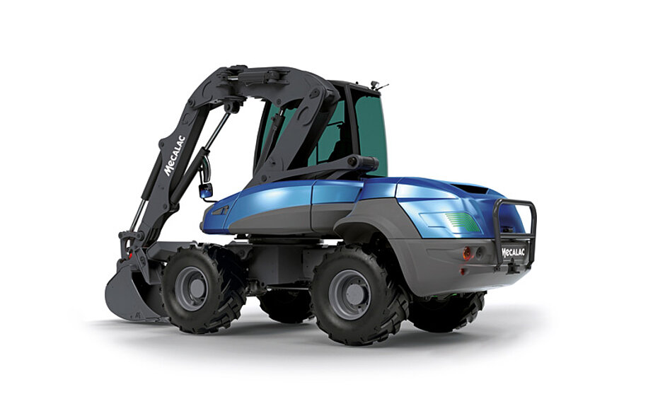 Der neue Elektrobagger e12 verkörpert für Mecalac die logische Weiterentwicklung eines Ansatzes, der seit 1974 die Arbeit auf der Baustelle dank immer vielseitigerer Maschinen perfektioniert, wodurch auch die Anzahl der Maschinen vor Ort reduziert, die Einsatzdauer optimiert und der Betrieb rentabel gemacht wird. Das »e« in der Modellbezeichnung steht für »electric«, »ecosystem«, »emission-free« oder ebenso »emblematic«. Weil das Mecalac-Modell 12 MTX mit Verbrennungsmotor dank seiner Bauweise nach Anbieterangaben geradezu prädestiniert ist für eine Elektroversion, wurde er anstelle des Dieselmotors mit einer LiFePO₄-Batteriegruppe (Eisen-Lithium-Phosphat für dreifach erhöhte Ladezyklen) ausgestattet. Diese verbindet eine deutlich längere Lebensdauer als herkömmliche Batterien mit der Sicherheit, weder eine Brandgefahr noch das Auslaufen der Batterieflüssigkeit beachten zu müssen.