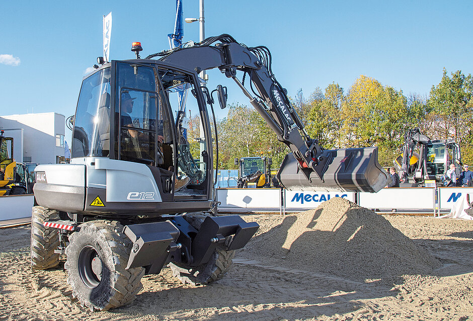 Auf der Bauma wurde gleichzeitig die neue Reihe von Kompaktladern von 1,74 t bis 2,85 t vorgestellt, die mit MCL2, MCL4, MCL6, MCL8 sowie MCL4+ und MCL6+ insgesamt sechs Modelle umfasst (ebenfalls bauMAGAZIN 10/22, Seite 102). Bei allen Modellen verbaut ist der M-Antrieb, mit welchem sich die Maschinen in einen Werkzeugträger verwandeln. Die Geschwindigkeit lässt sich mit dem Fußpedal bei einer bestimmten Motordrehzahl steuern. Zudem sind die neuen Modelle mit MyMecalac für ein erweitertes Flotten-Management vernetzbar. Ein Tastenfeld namens Digicode soll überdies eine verbesserte Kontrolle über die Maschinenbenutzung liefern. d