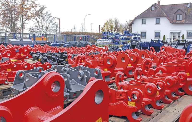 Die Abstufung der Kinematikgruppen in dieser Datenbank ist sehr fein gehalten, hier finden sich immer noch rund 800 Baggergruppen und etwa 1 000 Anbaugerätegruppen. Bei Anbaugeräten und Schnellwechslern können so der exakte Öffnungs- und Schließwinkel der ursprünglichen Baggerkinematik eingehalten werden und damit die volle Funktionalität und Beweglichkeit erhalten bleiben. Auch wenn sich an der Schnittstelle des Baggerarms bis heute keine Norm durchgesetzt hat, so hat Lehnhoff als Pionier der Schnellwechselsysteme in Deutschland mit seinen über 130 000-fach verkauften Systemen doch fast schon so etwas wie eine Norm geschaffen. Das Lehnhoff-Adaptersystem ermöglicht die freie und flexible Werkzeugwahl innerhalb einer Baggerklasse und darüber hinaus den schnellen Wechsel zwischen verschiedenen Tätigkeiten. Damit das Anbaugerät auch zum Schnellwechselsystem passt, bietet Lehnhoff für alle Anbaugeräte passende Adapter.