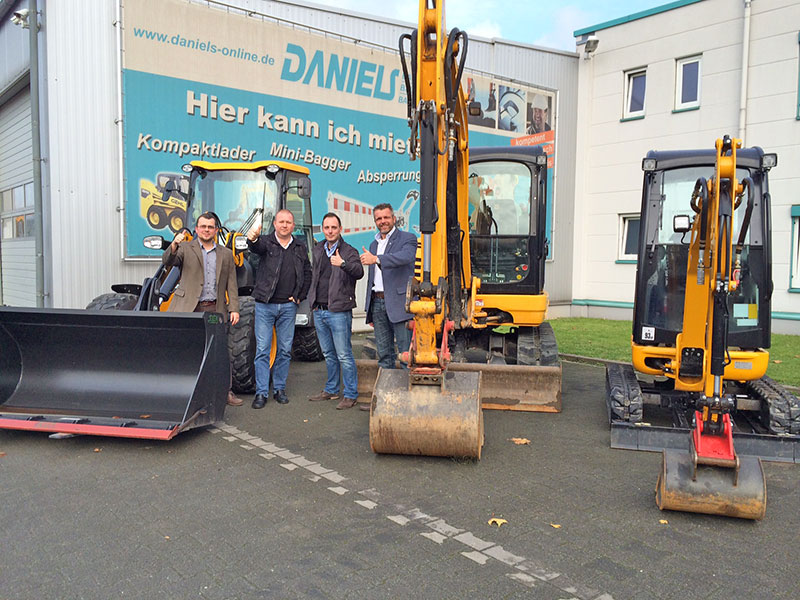 Die DEMCO JCB Vertrieb & Service ist Deutschlands größter Vertriebshändler für JCB-Baumaschinen mit sechs Standorten und zahlreichen Stützpunkten in Nordrhein-Westfalen, Rheinland-Pfalz und Hessen. Alexander Wagener, Geschäftsführer von DEMCO JCB und DEMCO Rents, freut sich auf die Zusammenarbeit: »Für unsere Bestandskunden bedeutet die Kooperation mit Daniels Baumaschinen bessere Erreichbarkeit und ein Plus an Servicenähe; für Neu- und Bestandskunden von Daniels Baumaschinen bedeutet dies ein größeres Portfolio bei Miete und Verkauf.« Wagener verweist zudem auf die gut ausgerüstete Werkstatt von Daniels Baumaschinen, die die hohen Standards eines JCB-Servicecenters voll und ganz erfülle. »Um dem Unternehmensmotto von DEMCO JCB ›Baumaschinen. Sofort. Vor Ort.‹ gerecht werden zu können, ist ein großes Händlernetzwerk und kompetenter Service das Wichtigste«, so Dirk Daniels, Geschäftsführer von Daniels Baumaschinen. »Unsere qualifizierten Servicetechniker kümmern sich fortan auch um Garantieabwicklung, Wartung und Instandsetzung von kundeneigenen JCB-Maschinen. Durch die Kooperation mit DEMCO Rents können wir unseren Kunden auch größere Maschinen wie Raupen- und Mobilbagger sowie Tele- und Geländestapler in der Miete anbieten.«