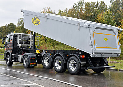 Mit »Meiller Rent« bringt der bayerische Kippaufbautenhersteller ein flexibles Mietangebot an den Start. Künftig sind verschiedene Kippsattel und weitere Anhänger kurzfristig an zahlreichen Mietstützpunkten verfügbar. Kunden sollen dadurch schnell auf Auftragsspitzen oder spezielle Transportaufgaben reagieren, die Lieferzeit für ihren neuen Anhänger überbrücken oder Ausfälle während Service- und Reparaturzeiten vermeiden können. Die Mietdauer kann flexibel gewählt werden, bei Bedarf ist die vereinbarte Laufzeit verlängerbar. Eine Übernahme des Anhängers nach Ende der Miete ist ebenfalls möglich. Standardmäßig sind in der Miete 8 000 km/Monat frei. Verschleißkosten, die beispielsweise bei Reifen und Bremsen anfallen, übernimmt bei sachgemäßer Handhabung Meiller. Für selbst- und fremdverschuldete Schäden besteht für den Mieter eine Kfz-Haftpflichtversicherung sowie eine Teil- und Vollkaskoversicherung. »Meiller Rent«-Aufbauten sind immer mit einem Telematikpaket ausgestattet. Mieter können kostenlos von den resultierenden Daten profitieren und anhand dieser Prozesse optimieren, um und letztlich noch wirtschaftlicher zu arbeiten. Die Miet-Anhänger sind für den Transport von Sand, Kies und Aushub im Baustellenbereich geeignet. »Mit ›Meiller Rent‹ haben wir ein flexibles Mietprogramm ins Leben gerufen, das Unternehmen in unterschiedlichen Situationen unter die Arme greifen soll. Sie erhalten kurzfristig einen auf ihre Bedürfnisse zugeschnittenen Anhänger und brauchen sich um Lieferzeit, Versicherung oder den Wiederverkauf keine Gedanken machen«, sagt Stefan Huber, Leiter Vermietung. t