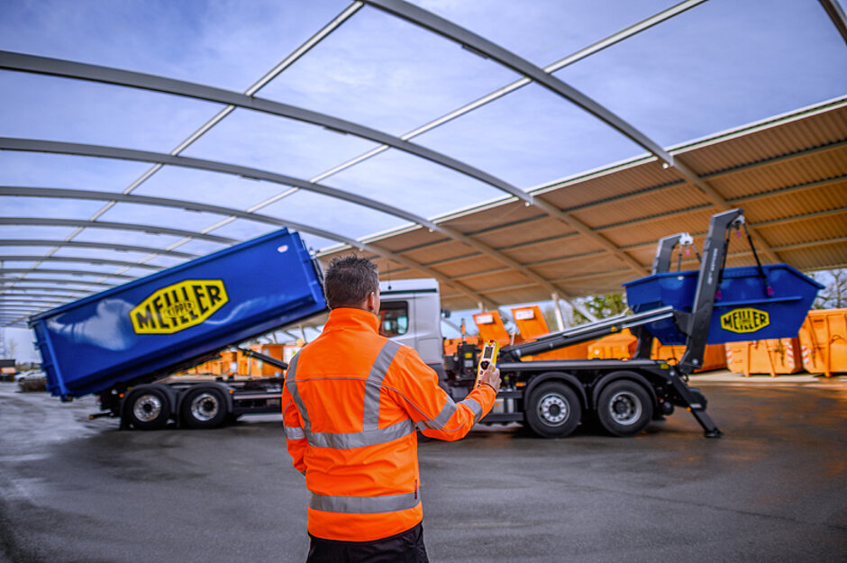 Zuletzt stellt MEILLER auf dem Summit seine neue Funkfernsteuerung i.s.a.r.-control 3 vor. Die neue Generation der Fernsteuerung kombiniert die bekannte intuitive Handhabung mit moderner Technik und attraktivem Design. Zukünftig werden die bisherigen Bedienelemente reduziert und durch ein Display in Kombination mit einem Joystick erweitert. Dadurch wird für den Fahrer eine praktische und noch einfachere Bedienung aller Funktionen seines MEILLER Kippers aus sicherer Distanz und bei bester Sicht auf den Ablauf gewährleistet. Das neue MEILLER Bedienkonzept steht nicht nur für Bedienkomfort sowie eine sichere Steuerung sämtlicher Aufbauten. Seine intelligente Vernetzung der Aufbausteuerung mit dem Motorwagen trägt auch zur Kraftstoffeinsparung und geringeren Schadstoff- und Lärmemissionen bei. Die Start-Stopp-Funktion sowie die patentierte MEILLER Drehzahlautomatik sorgen dafür, dass der Motor nur läuft, wenn mit dem Aufbau auch tatsächlich gearbeitet bzw. die Drehzahl je nach benötigter Leistung gesenkt oder erhöht wird.