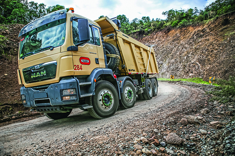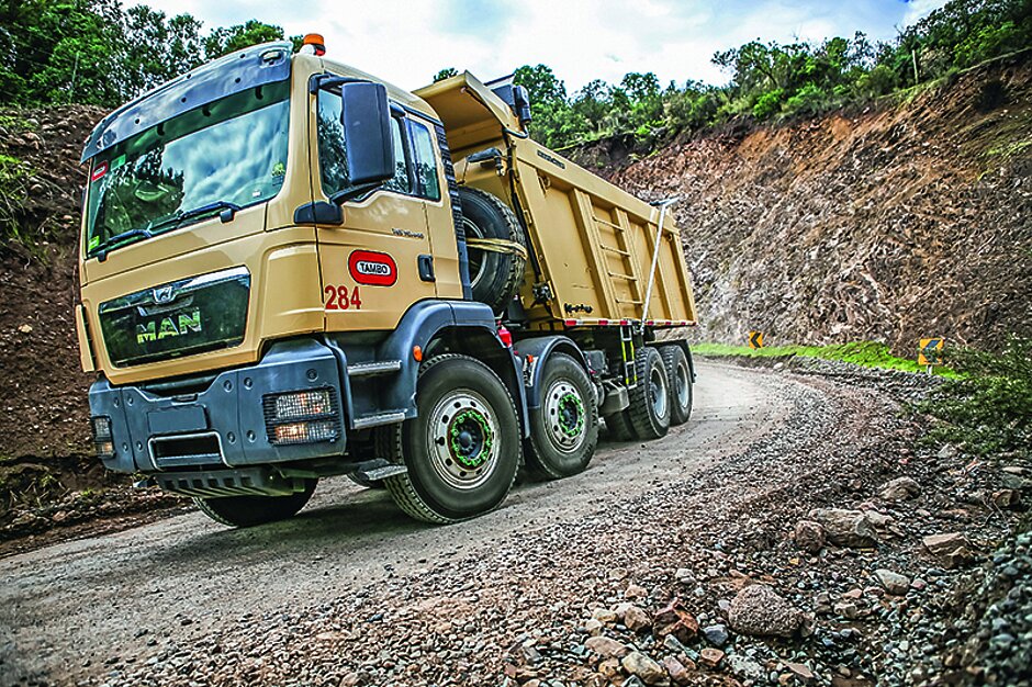 Aus dem Eisenerz werden im Jahr rund 0,5 Mio. t Feinkupfer gewonnen. Doch zunächst müssen Eisenerz, Steine und Erde oberirdisch transportiert werden. Dafür benötigt man Fuhrunternehmen mit Fahrzeugen, die darauf ausgelegt sind, im Dauereinsatz Schwerstarbeit zu leisten. Tambo ist eines dieser Unternehmen – 1988 von Mauricio González Urrutia gegründet, führt inzwischen der Sohn Camilo González Pendola den Betrieb. Der Fuhrpark wurde über die Jahre größer, der Schwerpunkt blieb der Minenabbau. Heute stehen dem Familienbetrieb 120 Lastwagen und 90 Bagger zur Verfügung. Allein davon sind 80 Fahrzeuge von Meiller aufgebaut. Camilo González Pendola setzt mit dem klassischen Hinterkipper H436 und dem 50-Tonner P450 auf zwei starke 4-Achser, die mit einem Nennvolumen von 20 m³ bzw. 22 m³ auch unter rauen Einsatzbedingungen ihre Leistung abrufen. Schwergewichte wie den P450 bekommt man in Deutschland eher selten zu Gesicht: Lkw mit 50 t erhalten auf öffentlichen Straßen in der Regel keine Zulassung.