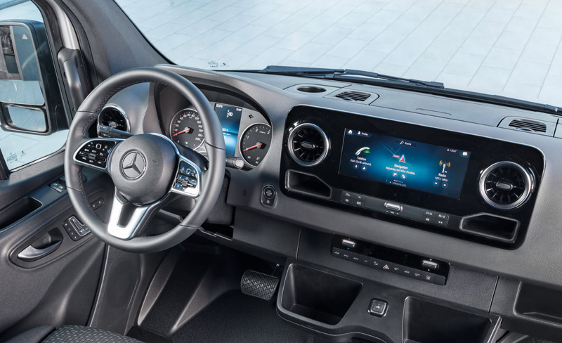 Die dritte Sprinter-Generation will mit einem progressiven Design sowie Komfort- und Sicherheits-Features auf Pkw-Niveau aufwarten. Gleichzeitig verspricht sie dank gesenkter Gesamtbetriebskosten sowie kundenorientierter Detaillösungen eine maximale Wirtschaftlichkeit. Zu den wichtigsten Neuerungen gehört die umfassende Internetanbindung. Die neuen vernetzten Dienste von Mercedes Pro connect sollen zusammen mit dem ebenfalls neuen Multimediasystemen MBUX (Mercedes-Benz User Experience) die Basis für sämtliche Logistik- und Transportanforderungen bilden. Das beginnt beim komplexen Management einer Großflotte und endet beim Fuhrpark von Kleinunternehmen. Mercedes Pro connect verbindet den Fuhrparkmanager mit allen Fahrzeugen und Fahrern seiner Flotte. Damit können online Aufträge gesteuert und Fahrzeuginformationen wie Standort, Kraftstoffvorrat oder Wartungsintervalle nahezu in Echtzeit abgefragt werden. Zum Marktstart von Mercedes Pro connect als Werkslösung werden acht Pakete mit zentralen flotten-, fahrzeug-, fahrer- und standortbasierten Diensten eingeführt. Dazu zählen beispielsweise Fahrzeugstatus, Fahrzeuglogistik, Wartungs- und Unfallmanagement sowie ein digitales Fahrtenbuch.