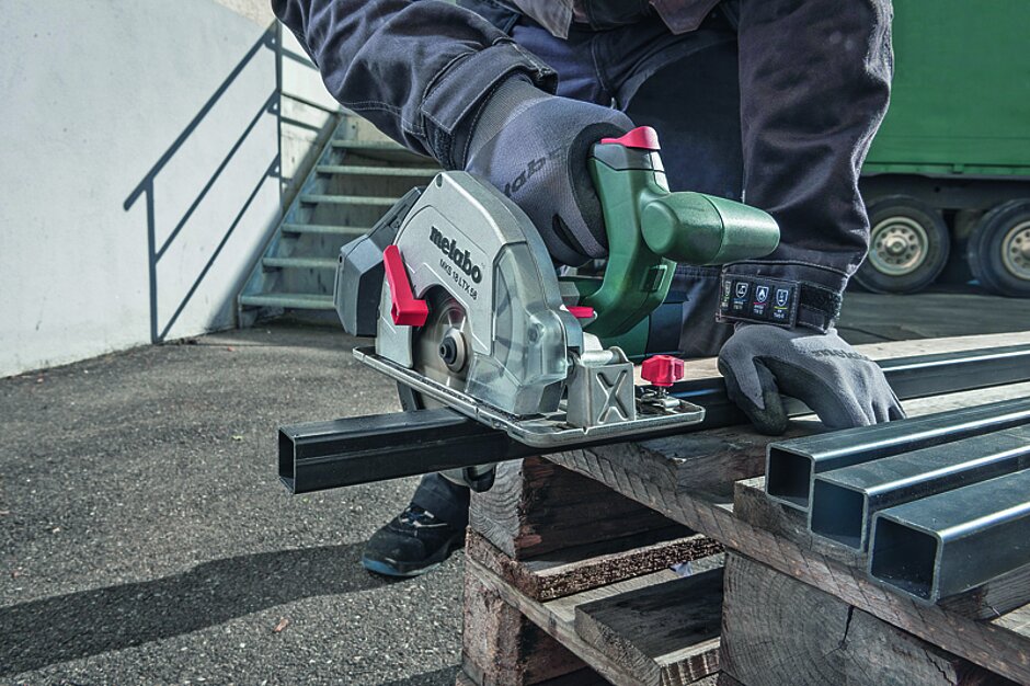 Die Akku-Metallhandkreissäge MKS 18 LTX 58 wird von Metabo als die optimale Maschine für alle beschrieben, die auf der Baustelle mobil bleiben wollen, um die verschiedensten Arten von Metall vor Ort zuzuschneiden oder an einem Werkstück nachzuarbeiten. Mit der neuen Akku-Metallhandkreissäge lassen sich Rohre, (Installations-) Schienen und Profile oder auch Metallgitter und Wellbleche ablängen. Mit einer maximalen Schnitttiefe von 58 mm ist das Trennen von Profilen in nur einem Schritt möglich. »Durch ihr geringes Gewicht und die kompakte Bauweise ist die MKS 18 LTX 58 komfortabel in der Handhabung«, sagt Metabo-Produkt-Managerin Katja Stark. Die Verbindung mit den Metabo-Führungsschienen in verschiedenen Längen sorgt für exakte Schnitte. Die Maschine kann mit einem im Lieferumfang enthaltenen Adapter ohne Werkzeug mit der Führungsschiene verbunden werden.