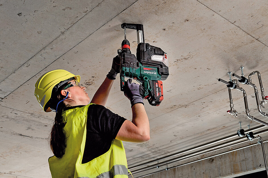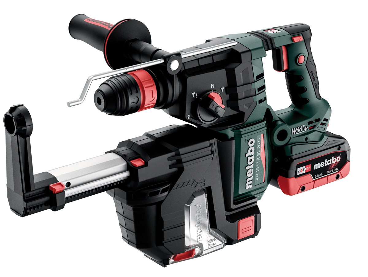 Die neuen Hämmer wollen auch mit hohem Anwenderschutz überzeugen. Beispielsweise verfügt der Akku-Kombihammer KH 18 LTX BL 28 Q über eine Anti-Kick-Back-Funktion: Dank spezieller Sensoren stoppt die Maschine im Falle eines Rückschlags sofort und schützt damit den Anwender. Je nach Modell sind die neuen Kombihämmer ebenso mit einem Anti-Vibrationssystem ausgestattet: VibraTech (MVT) entkoppelt Handgriff und die Motor-Getriebe-Kombination voneinander, dämpft damit Vibrationen im Griffbereich und soll ein komfortables, gesundheitsschonendes Arbeiten in jeder Arbeitsposition auch im Dauereinsatz unterstützen. Für weiteren Gesundheitsschutz sorgt die integrierte Staubabsaugung ISA, die werkzeuglos montiert werden kann und sich als ideal für Arbeiten über Kopf oder in staubsensiblen Bereichen erweisen sollte.