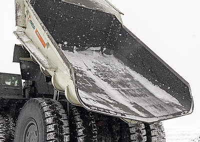 Um bestmögliche Ergebnisse zu erzielen, wird die Auskleidung stets an die speziellen Anforderungen eines Betriebs angepasst. So können bei der Gummierung an verschiedenen Stellen unterschiedliche Stärken eingesetzt werden, wenn die konkreten Gegebenheiten wie etwa Ladewinkel und Fallhöhe dies erfordern. Sofern zum Ladegut eines Betriebs auch klebrige Materialien zählen, lässt sich die Metso Auskleidungslösung den Anforderungen entsprechend so anpassen, dass sogenanntes „Carry-Back“ – verbleibendes Material auf der Ladefläche nach dem Abladen – vermieden wird. Die Nutzlast des LKWs ist dadurch bei Folgetransporten nicht eingeschränkt. Unter der Bezeichnung „Flexible Lining“ stellt Metso für solche Fälle mit dieser Zusatzoption sicher, dass das Fahrzeug stets seine volle Kapazität behält und dadurch maximal effizient arbeitet.