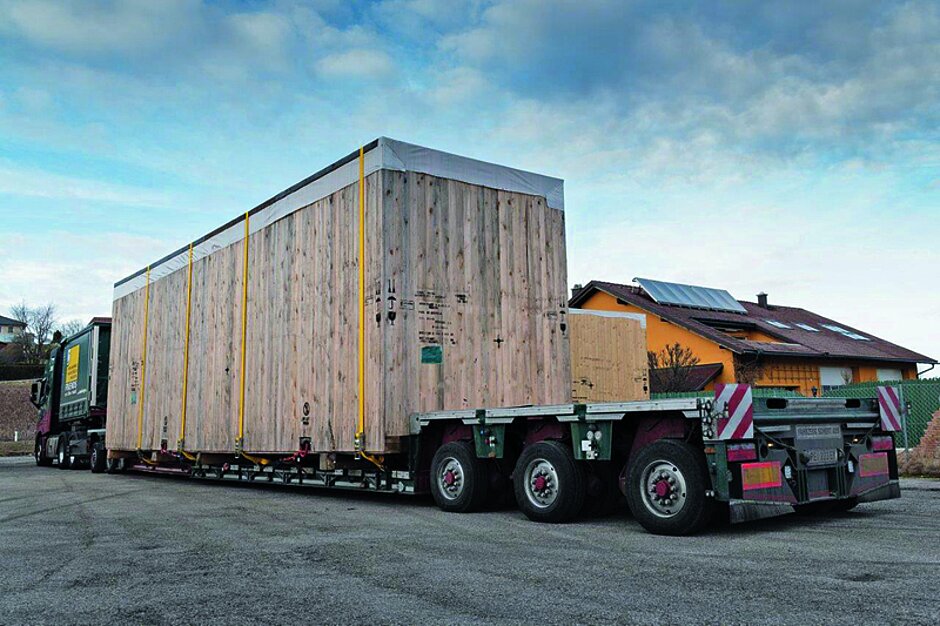 Der 4-Achs-Nachläufer zum Transport von Fertigteilen und -bindern bis zu einer Länge von 35 m gilt als ein Beleg für die Meusburger-Produktvielfalt, die das Unternehmen der Baubranche bietet.